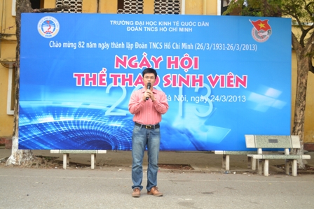 Th.S Nguyễn Hoàng Hà – Bí thư Đoàn Thanh niên đã phát biểu khai mạc hội thao với những lời động viên, cổ vũ thiết thực đối với các đội tham gia thi đấu, góp phần thúc đẩy tinh thần thể thao của các liên chi đoàn. Đồng chí nhấn mạnh: “Các bạn sinh viên không chỉ rèn luyện học tập, trí óc, tham gia các hoạt động đoàn, hội mà còn nên rèn luyện thể thao để có một sức khỏe, sức trẻ, sức bền phục vụ cho học tập xây dựng và bảo vệ tổ quốc.” Những lời phát biểu đó như thắp lên ngọn lửa chiến thắng đối với từng đội tham gia, hứa hẹn một ngày hội Thể thao hấp dẫn và thành công.