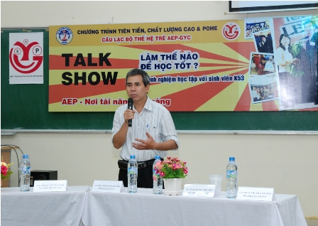 Tối ngày 11/9/2012 vừa qua, buổi talkshow với chủ để: “Làm thế nào để học tốt” do câu lạc bộ Thế hệ trẻ AEP – Chương trình Tiên tiến, Chất lượng cao và POHE tổ chức đã diễn ra hết sức sôi nổi tại phòng 104 – Giảng đường D, Đại học Kinh tế Quốc dân. Đây là chương trình đầu tiên của câu lạc bộ GYC tổ chức dành riêng cho sinh viên khóa 53 chương trình Tiên tiến – Chất lượng cao & POHE với mục đích tạo cơ hội cho các bạn sinh viên được học hỏi những kinh nghiệm quý báu và lắng nghe những chia sẻ hết sức chân thành của các anh chị sinh viên đi trước – những tấm gươngsáng của ngôi nhà AEP có thành tích xuất sắc trong học tập cũng như các hoạt động ngoại khóa trong và ngoài nhà trường.