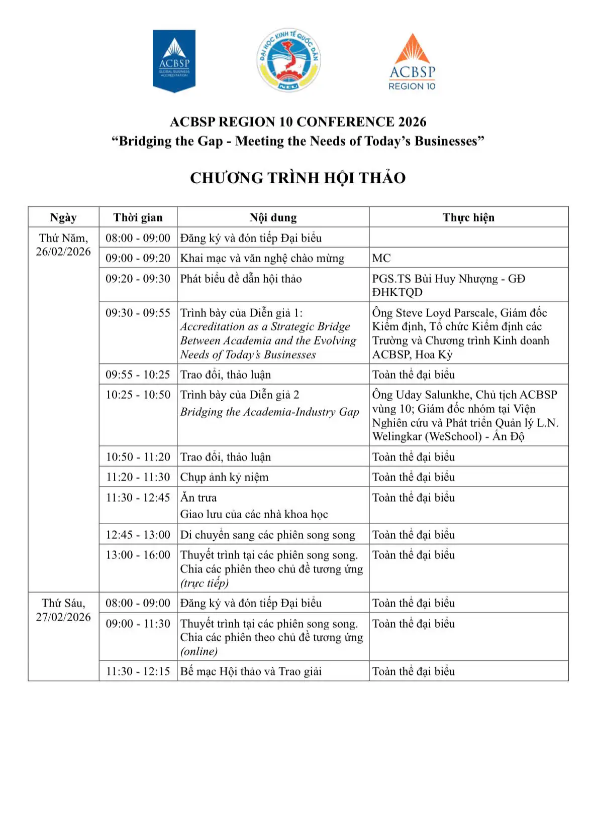 ACBSP Region 10 Conference 2026 “Bridging the Gap – Meeting the Needs of Today’s Businesses”