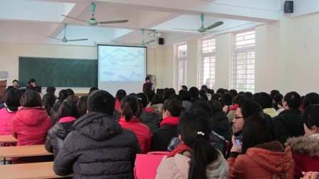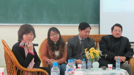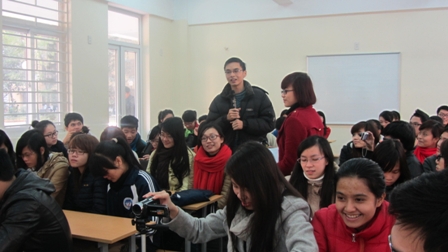 Mọingười chăm chú lắng nghe để giải đáp thắc mắc cho sinh viên