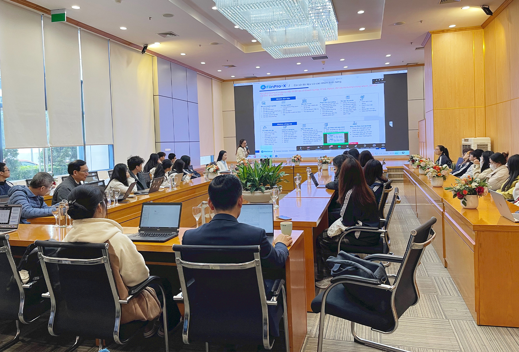 Tham dự khai mạc buổi tập huấn, về phía FiinGroup có: bà Trương Minh Trang – Giám đốc Điều hành, Bộ phận Thông tin Tài chính. Về phía Đại học Kinh tế Quốc dân có: TS. Nguyễn Quang Huy – Hiệu trưởng Trường Công nghệ; TS. Lê Việt Thủy – Giám đốc Trung tâm Ứng dụng CNTT; cùng đại diện lãnh đạo các đơn vị chức năng và hơn 200 giảng viên, sinh viên tham gia buổi tập huấn này.