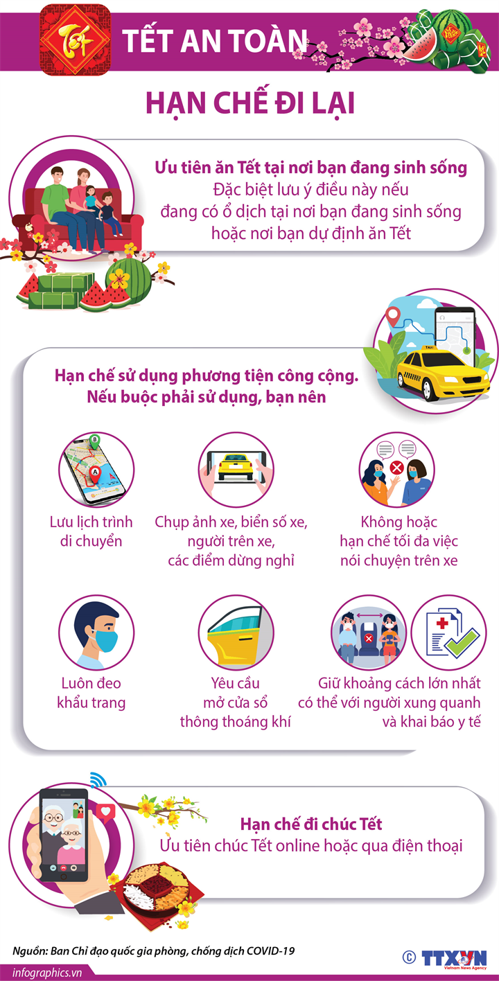 Trước những diễn biến của dịch COVID-19 trong nước hiện nay, Ban Chỉ đạo quốc gia phòng, chống dịch COVID-19 khuyến khích mọi người hạn chế đi lại trong dịp Tết Nguyên đán Tân Sửu 2021.