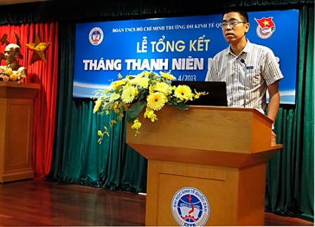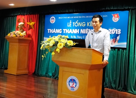 Báo cáo những kết quả nổi bật của tuổi trẻ nhà trường đã đạt được trong Tháng Thanh niên năm 2013, ThS Bùi Trung Hải – Phó Bí thư Thường trực Đoàn trường đã nhấn mạnh về tính rộng khắp, xuyên suốt và liên tục của các hoạt động từ cấp Thành đoàn đến Đoàn trường và liên chi đoàn, chi đoàn trong Tháng Thanh niên đã đem lại nhiều trải nghiệm bổ ích cho tuổi trẻ nhà trường. Sự kết hợp giữa các hoạt động chuyên môn, nghiên cứu khoa học, các hoạt động hướng nghiệp, các hoạt động giáo dục chính trị – tư tưởng, đạo đức lối sống cho đoàn viên, sinh viên và các hoạt văn hoá – văn nghệ, thể dục – thể thao đã làm phong phú bức tranh về hoạt động của tuổi trẻ nhà trường trong Tháng Thanh niên năm 2013 và chào mừng kỷ niệm 82 năm Ngày thành lập Đoàn TNCS Hồ Chí Minh. Một trong những điểm nổi bật có tính đổi mới và hiệu quả cao so với các năm khác trong Tháng Thanh niên năm 2013, đó là việc tổ chức các hoạt động hướng nghiệp cho đoàn viên sinh viên đã được Đoàn trường và các liên chi đoàn tập trung đẩy mạnh tổ chức, điều này thể hiện qua việc tổ chức một chuỗi các hoạt động giao lưu, chia sẻ giữa lãnh đạo các doanh nghiệp lớn, cáchiệp hội doanh nghiệp với sinh viên nhà trường. Các hoạt động không chỉ diễn ra trong Tháng Thanh niên mà còn tiếp diễn trong cả tháng 4 với chuỗi hoạt động của “Festival việc làm” trường Đại học Kinh tế quốc dân lần thứ VI… Với những kết quả hết sức tích cực đã đạt được, tuổi trẻ nhà trường đã được Thành đoàn Hà Nội tặng  Bằng khen cho mô hình công trình thanh niên “Vì tương lai học sinh miền núi” – đây là 1 trong 11 mô hình khối trường đại học và 30 mô hình toàn thành phố được Ban Thường vụ Thành đoàn Hà Nội khen thưởng trong Tháng Thanh niên năm 2013.