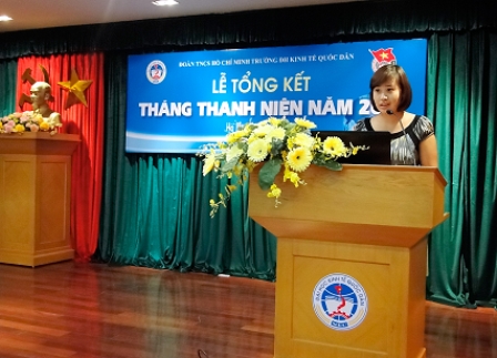 Phát biểu tại buổi lễ, đ/c Nguyễn Ánh Dương – Phó Bí thư Thành đoàn Hà Nội đánh giá cao các kết quả mà tuổi trẻ trường Đại học Kinh tế Quốc dân đã đạt được trong Tháng Thanh niên năm 2013. Đồng chí mong muốn rằng cán bộ Đoàn và đoàn viên, sinh viên nhà trường luôn nêu cao truyền thống vẻ vang của tuổi trẻ nhà trường, tích cực học tập và tham gia các hoạt động, phong trào thanh niên để rèn luyện bản thân cũng như đóng góp nhiều hơn nữa cho sự phát triển của nhà trường, Thủ đô và đất nước. Đồng chí cũng gửi lời cảm ơn tới Đảng uỷ – Ban Giám hiệu, lãnh đạo các đơn vị của nhà trường đã chỉ đạo, tạo điều kiện và hỗ trợ để các cấp bộ Đoàn trong nhà trường tổ chức tốt các hoạt động, mang lại nhiều lợi ích cho đoàn viên, sinh viên. Đồng chí cũng chúc cho tuổi trẻ nhà trường tiếp tục gặt hái được nhiều thành công hơn nữa cả trong học tập, nghiên cứu, công tác và tham gia các hoạt động xã hội.