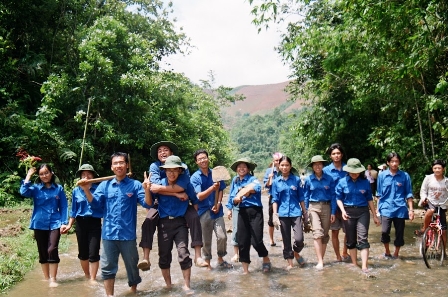 Đội viên đội SVTN trường tham gia hoạt động tình nguyện tại bản Nậm Kỳ năm 2004