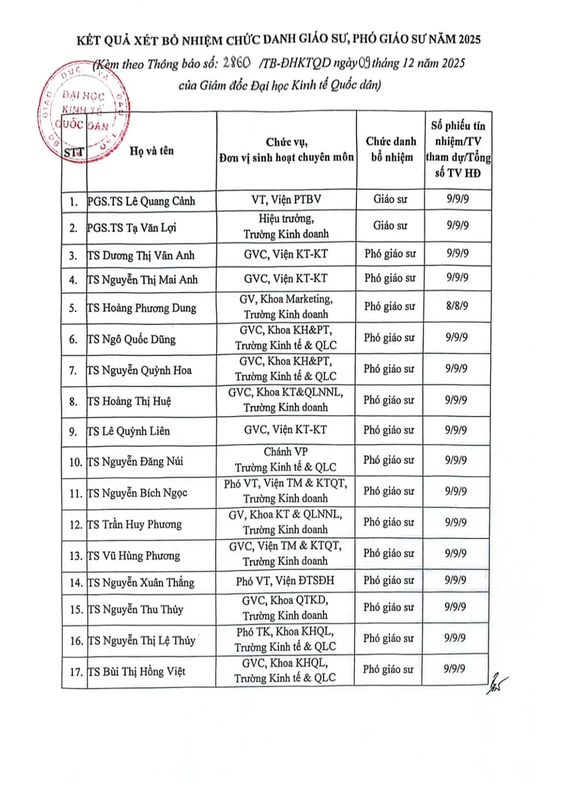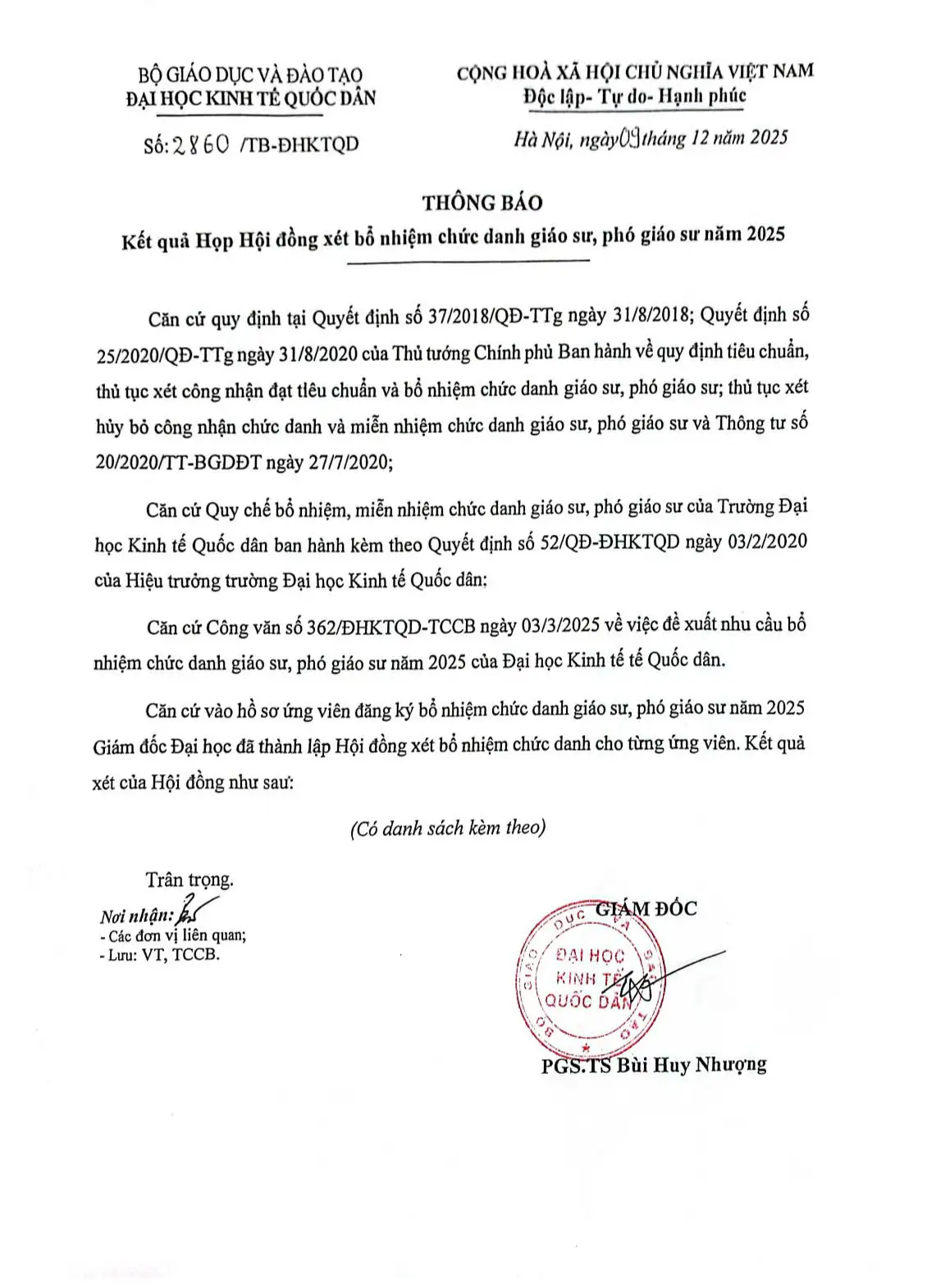 10/12/2025 2025-12-10 9:46Thông báo kết quả Họp Hội đồng xét bổ nhiệm chức danh giáo sư, phó giáo sư năm 2025