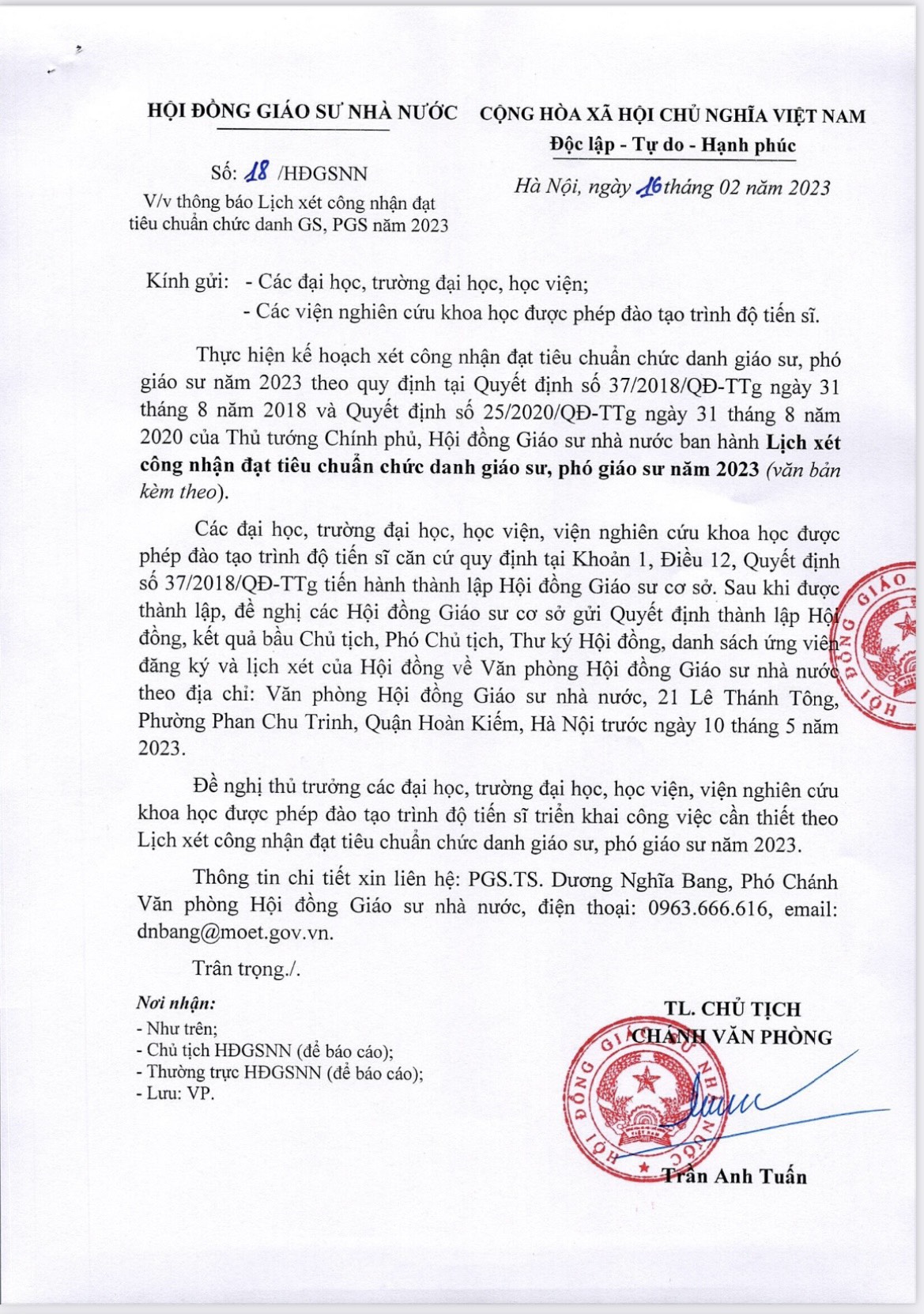 23/02/2023 2023-02-23 11:01Thông báo Lịch xét công nhận đạt tiêu chuẩn chức danh GS, PGS năm 2023