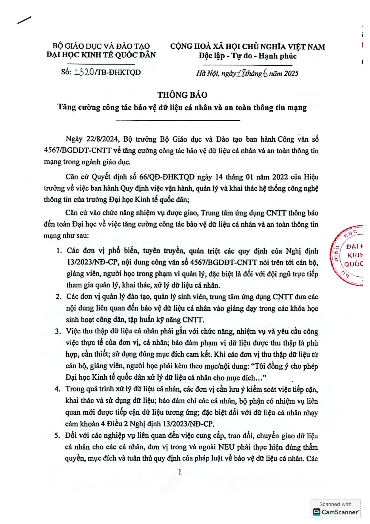 Thông báo Tăng cường công tác bảo vệ dữ liệu cá nhân và an toàn thông tin mạng
