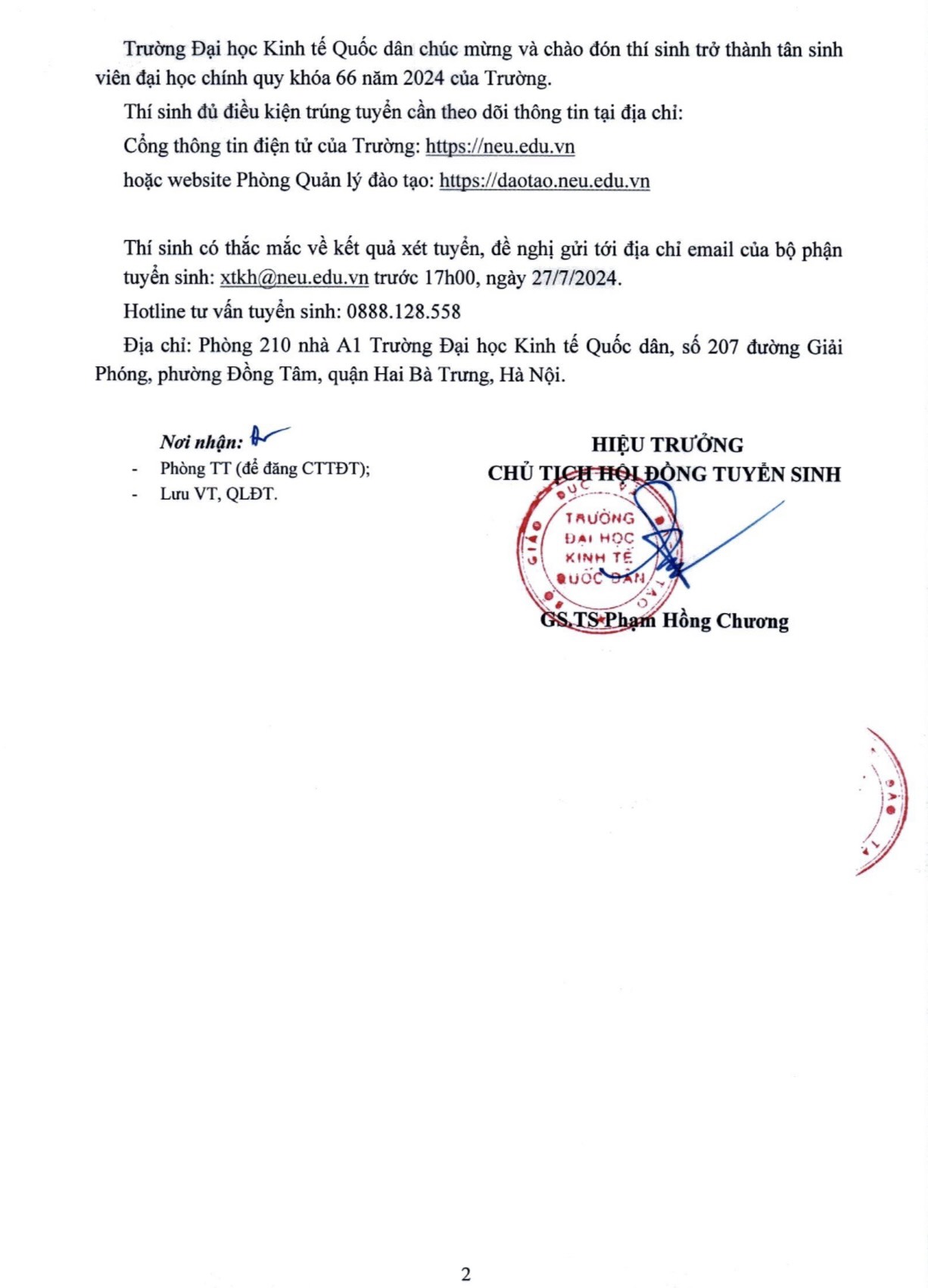Thông báo trúng tuyển hệ Liên thông đại học chính quy năm 2024