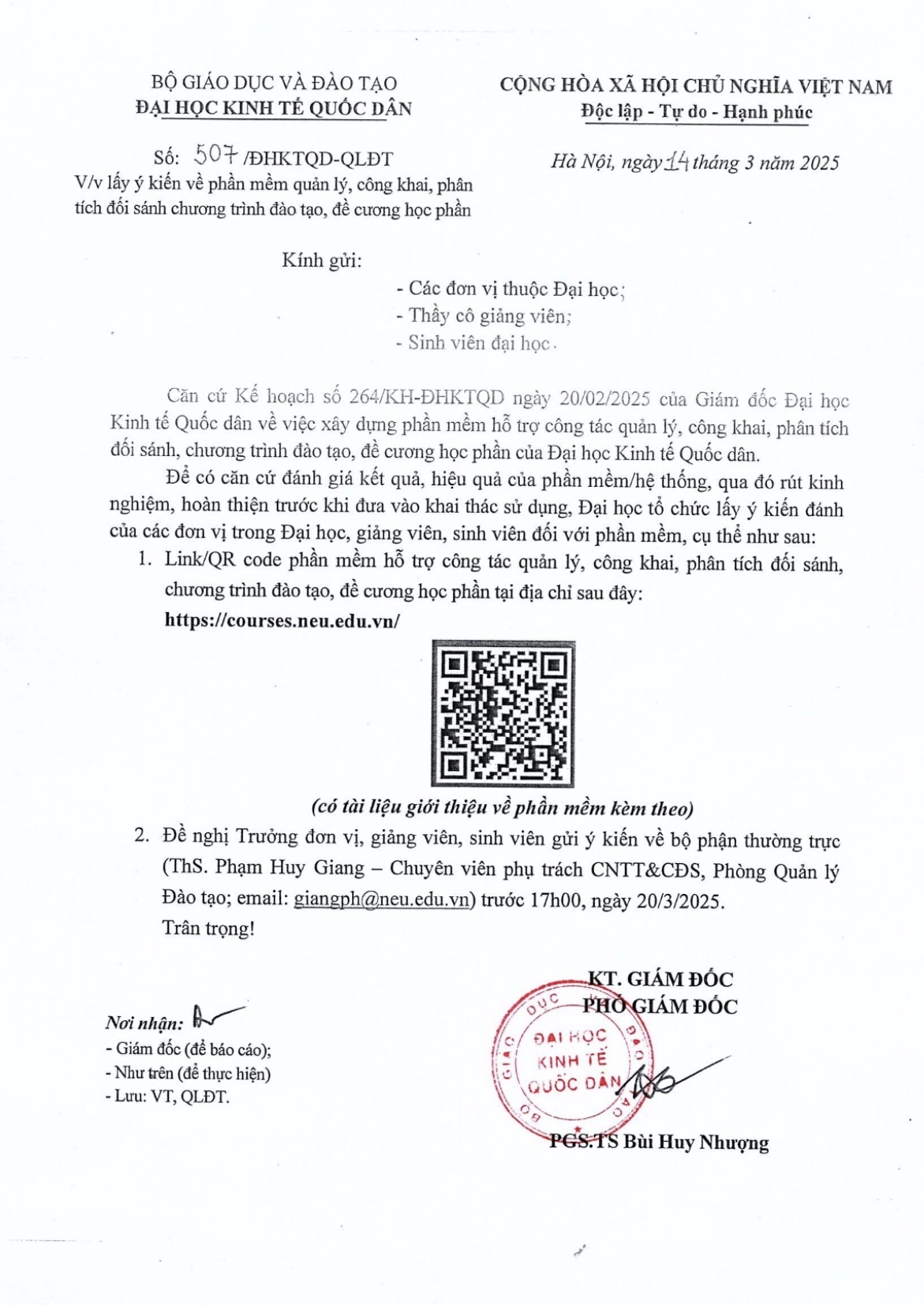 Thông báo v/v lấy ý kiến về phần mềm quản lý, công khai, phân tích đối sánh chương trình đào tạo, đề cương học phần
