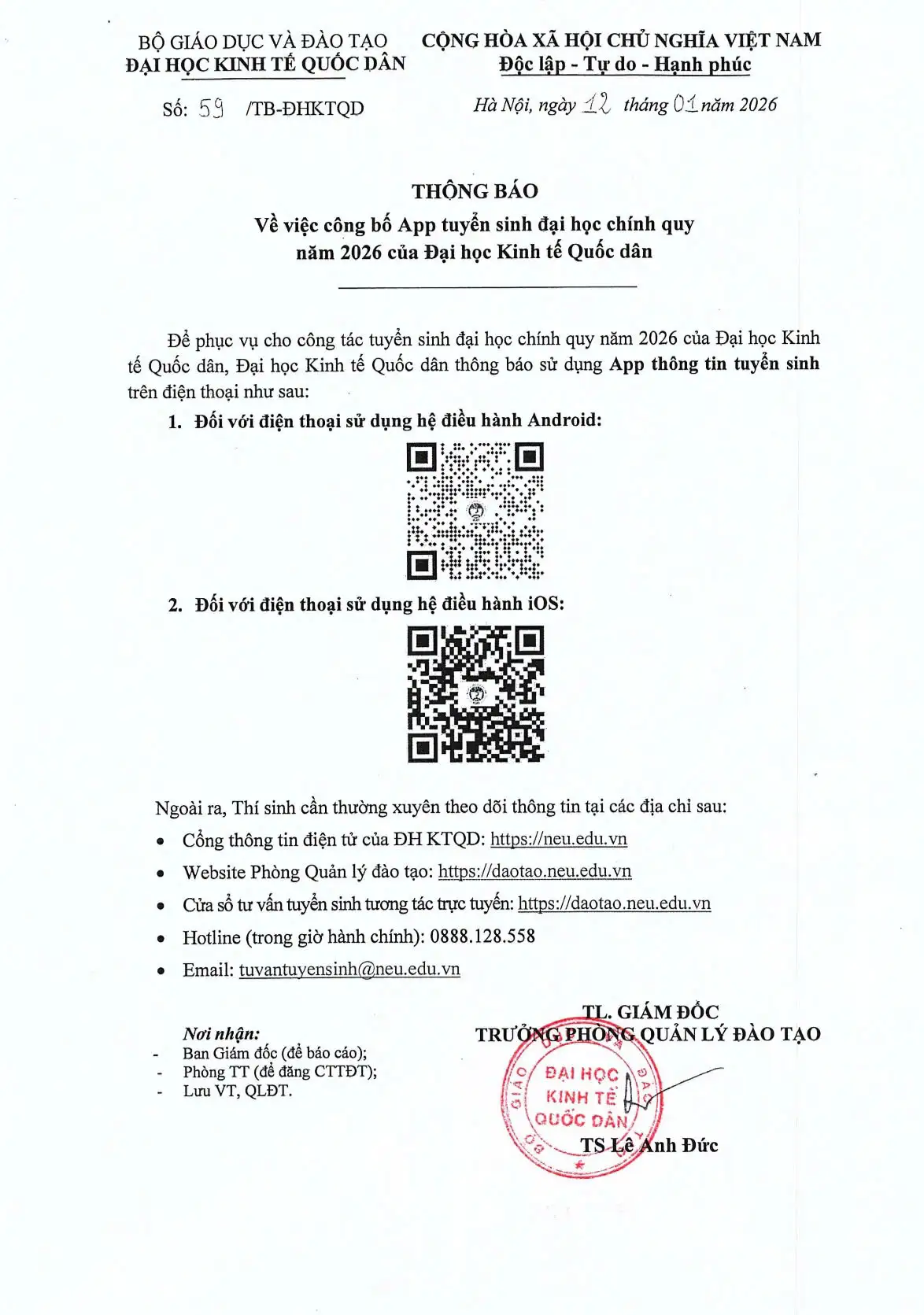 12/01/2026 2026-01-12 15:28Thông báo về việc công bố App tuyển sinh đại học chính quy năm 2026 của Đại học Kinh tế Quốc dân