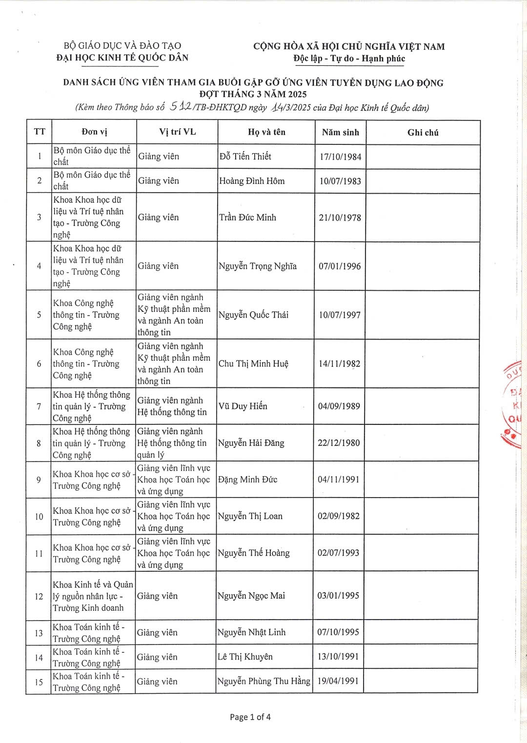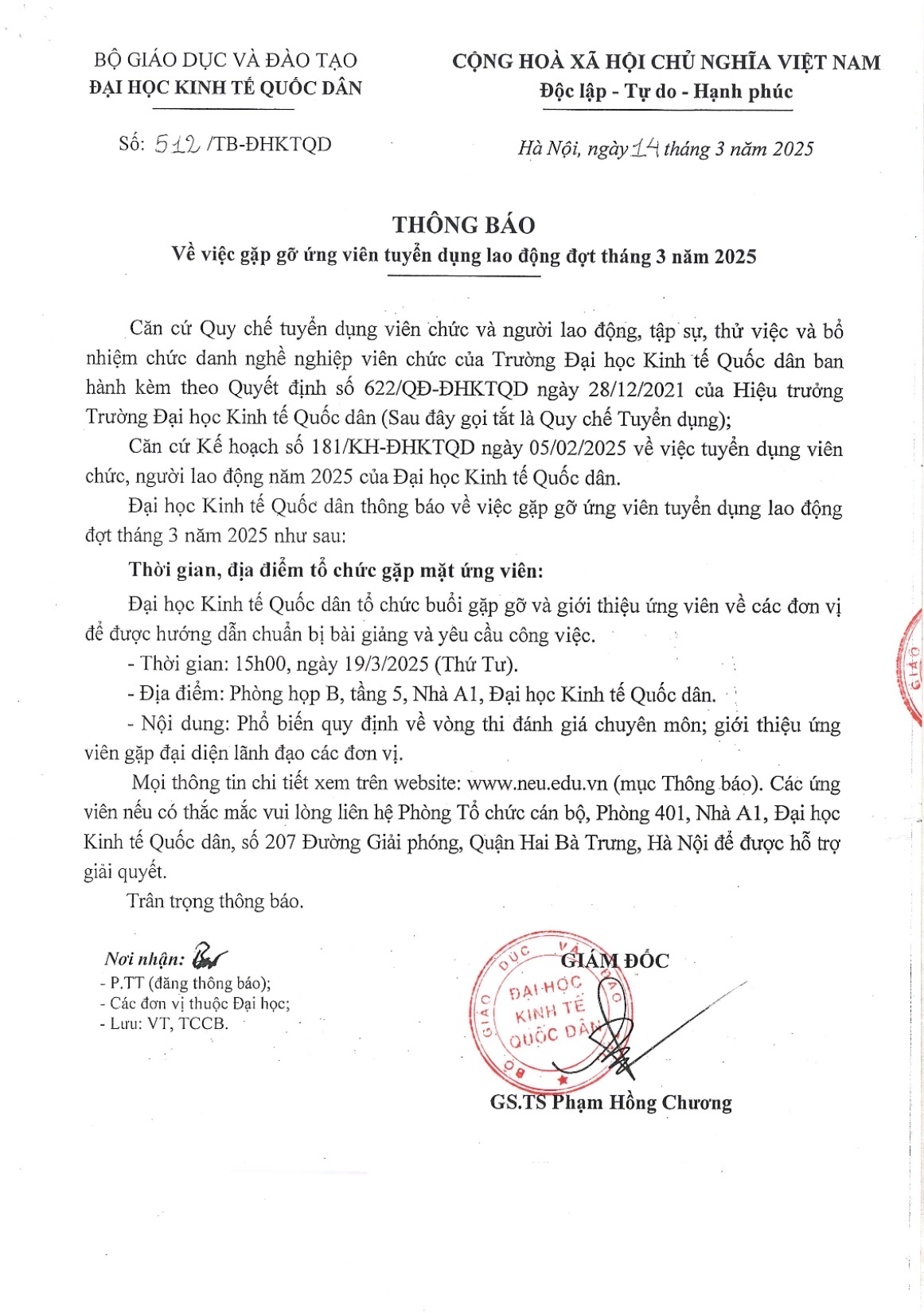 Đại học Kinh tế Quốc dân thông báo về việc gặp gỡ ứng viên tuyển dụng lao động đợt tháng 3 năm 2025 như sau: