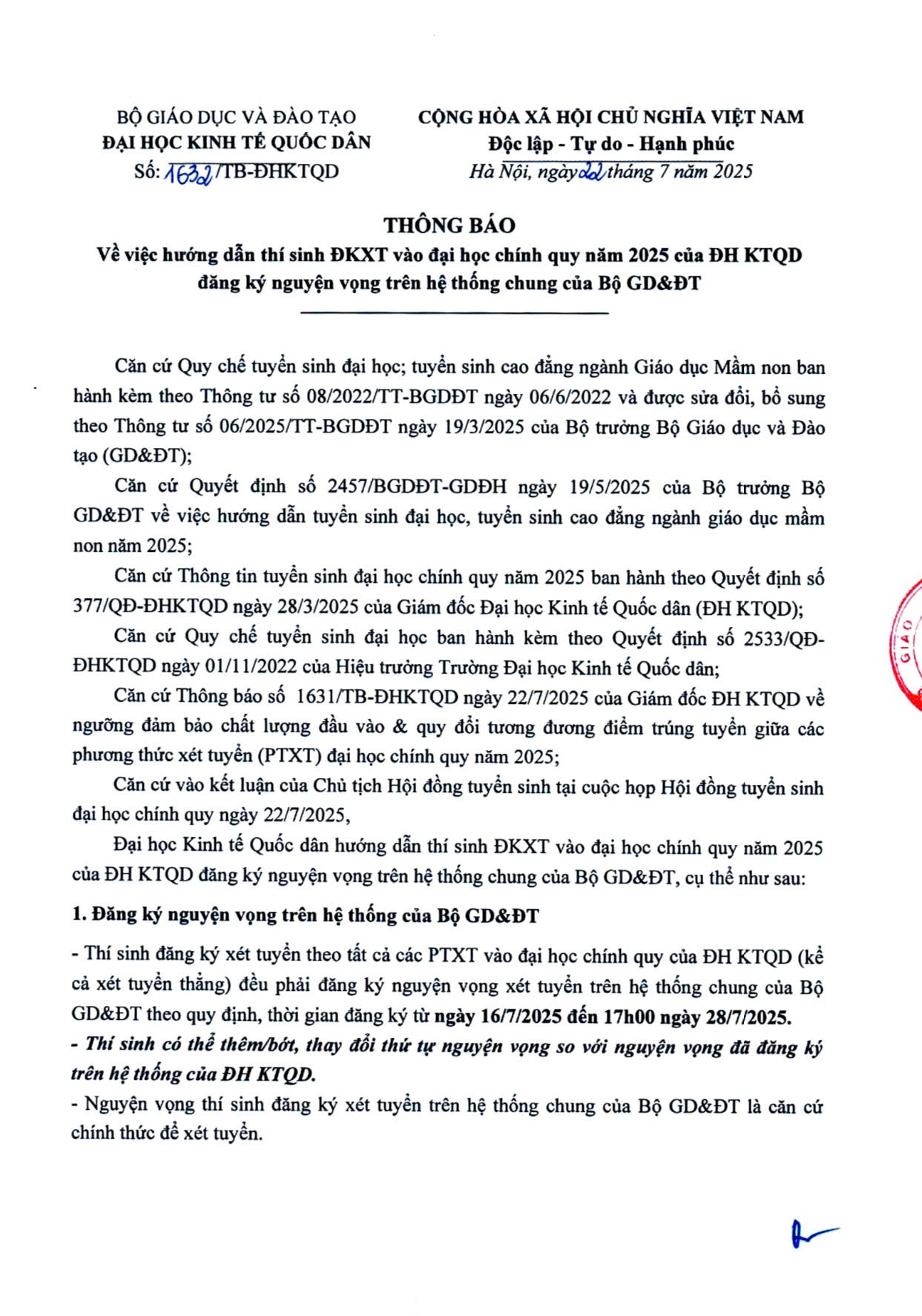 TB1632_Thông báo về việc hướng dẫn thí sinh ĐKXT vào ĐHCQ năm 2025 của ĐHKTQD đăng ký nguyện vọng trên hệ thống chung của Bộ GDĐT.pdf
