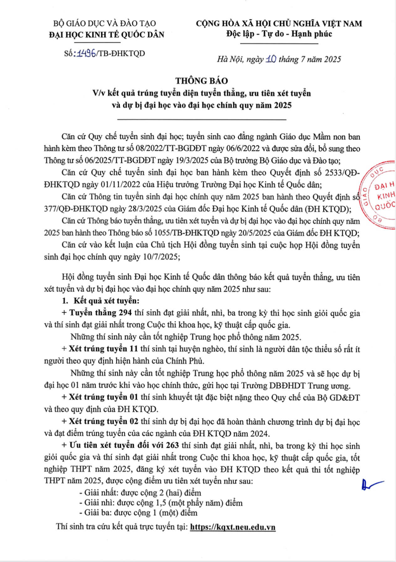 10/07/2025 2025-07-10 11:18Thông báo về việc kết quả trúng tuyển diện tuyển thẳng, ưu tiên xét tuyển và dự bị đại học vào đại học chính quy năm 2025