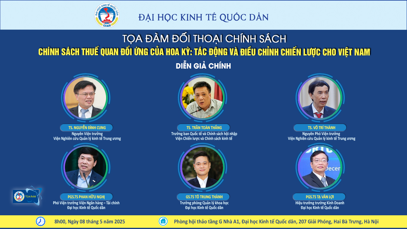 Trước bối cảnh đó, Đại học Kinhtế Quốc dân tổ chức tọa đàm đối thoại chính sách với chủ đề: “Chính sách thuế quan đối ứng của Hoa Kỳ: Tác động và điều chỉnh chiến lược cho Việt Nam”. Đây là diễn đàn để các nhà nghiên cứu, chuyên gia và nhà hoạch định chính sách cùng trao đổi, phân tích bản chất, tác động và đề xuất các giải pháp chiến lược phù hợp nhằm hỗ trợ doanh nghiệp và nền kinh tế Việt Nam thích ứng hiệu quả đối với những thay đổi trong chính sách thuế quan đối ứng của Hoa Kỳ trong bối cảnh mới.