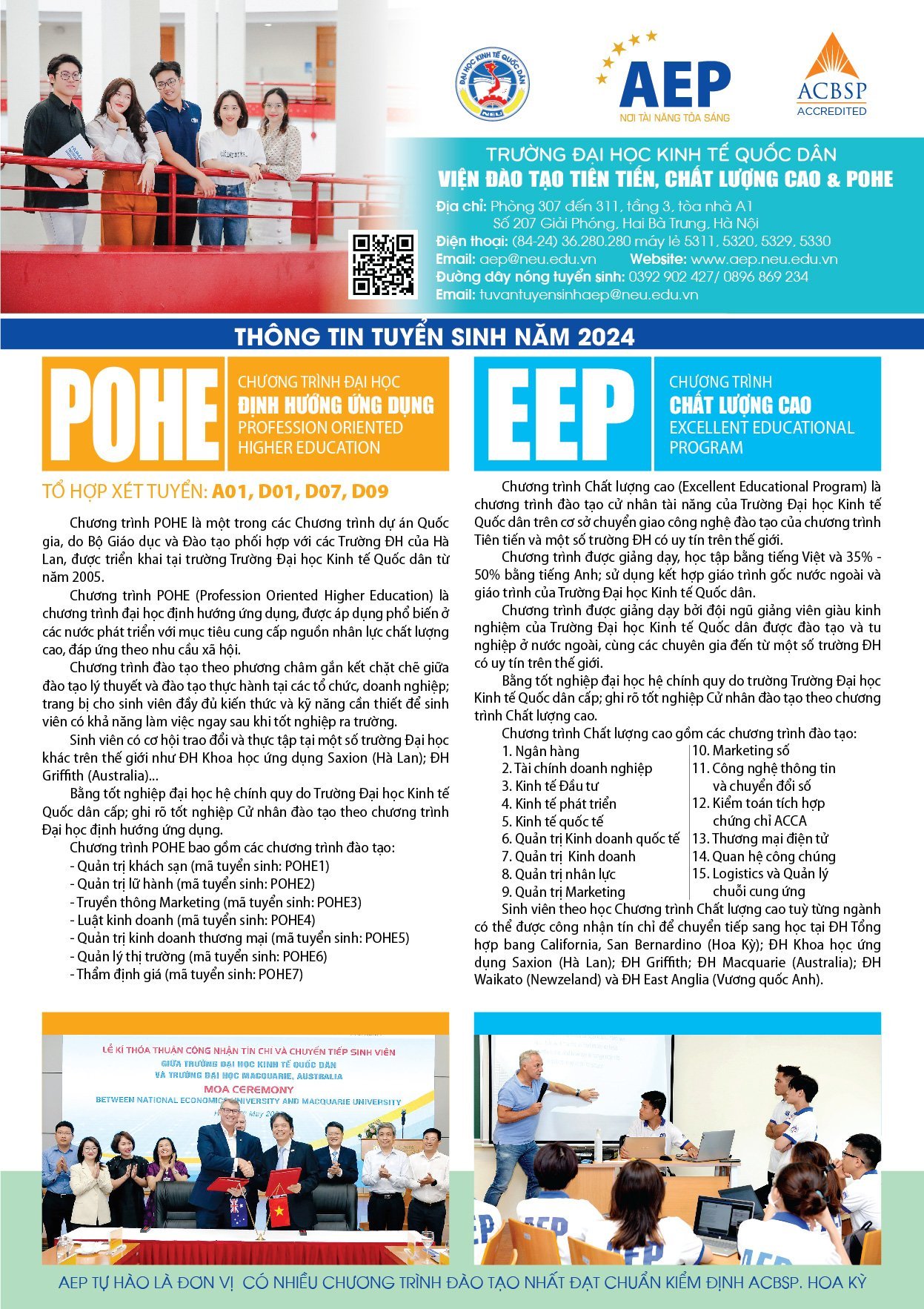 Thông tin tuyển sinh Đại học Chính quy của Viện Tiên Tiến, Chất lượng cao và POHE