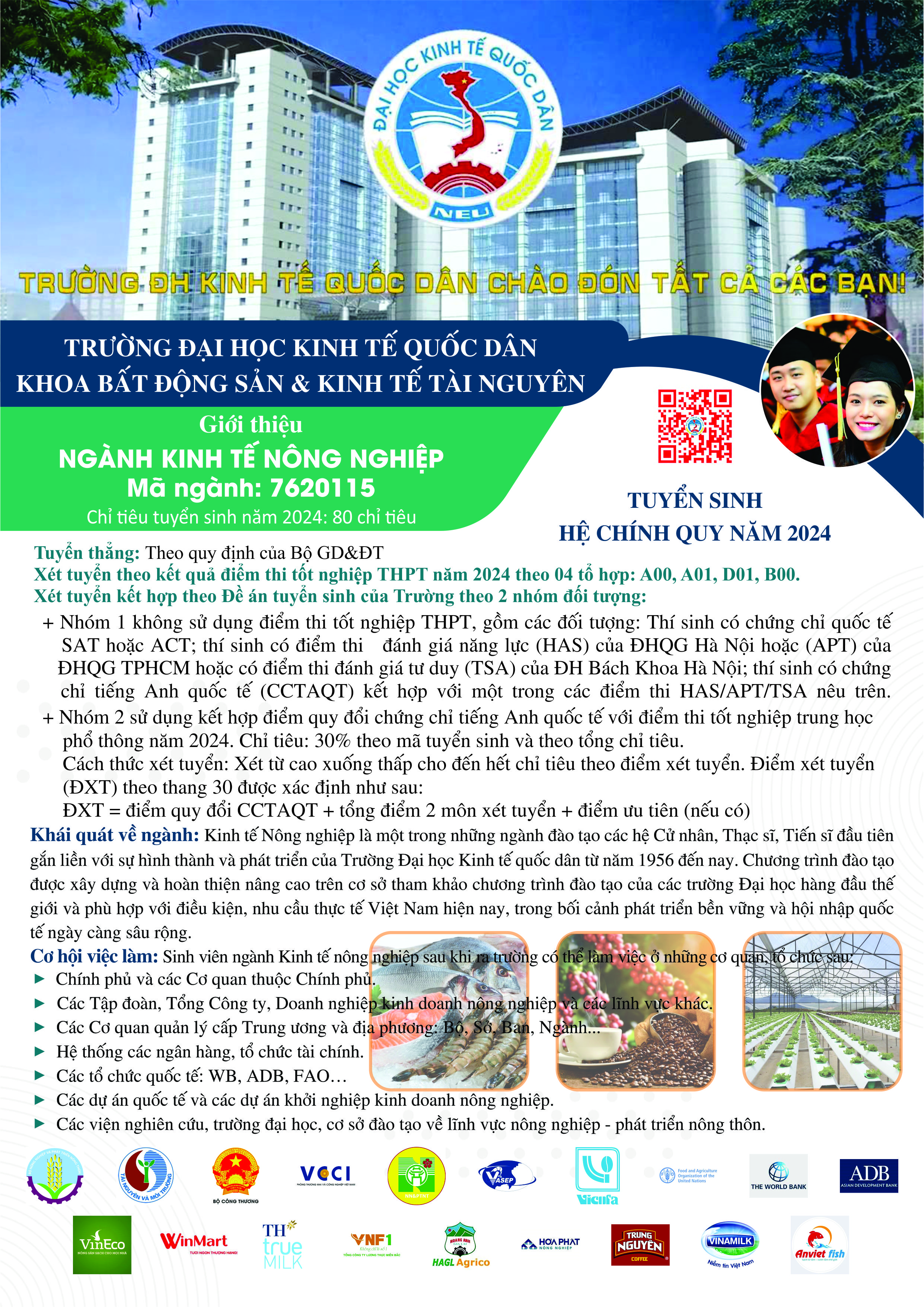 Thông tin tuyển sinh Đại học Chính quy ngành Kinh tế Nông nghiệp