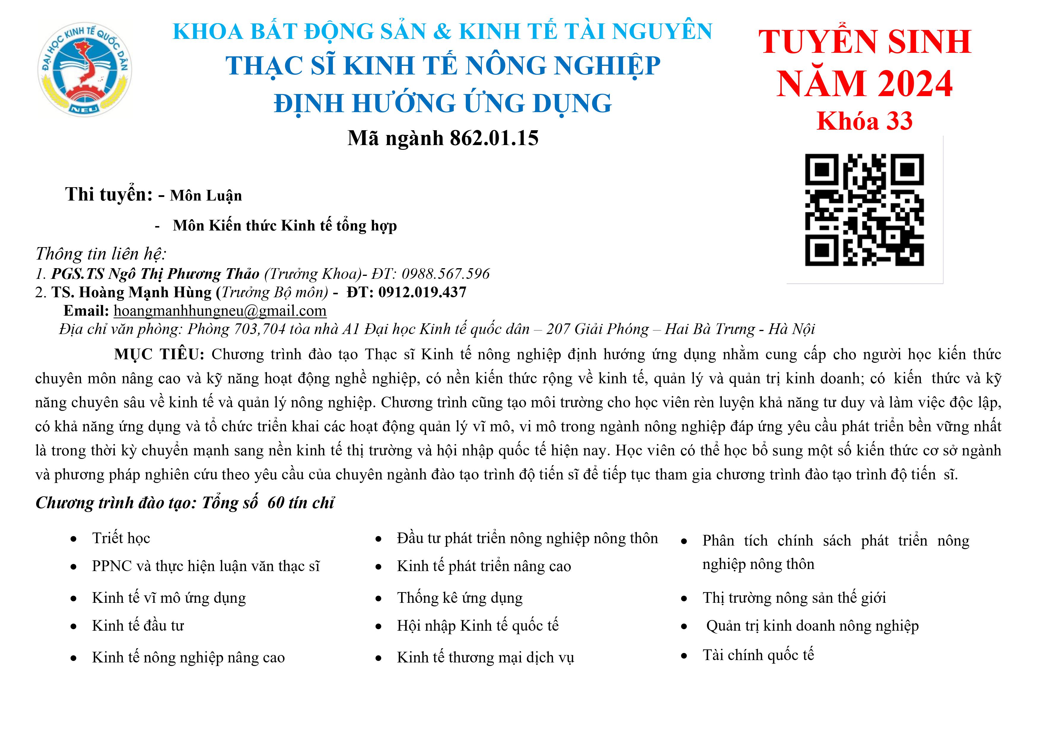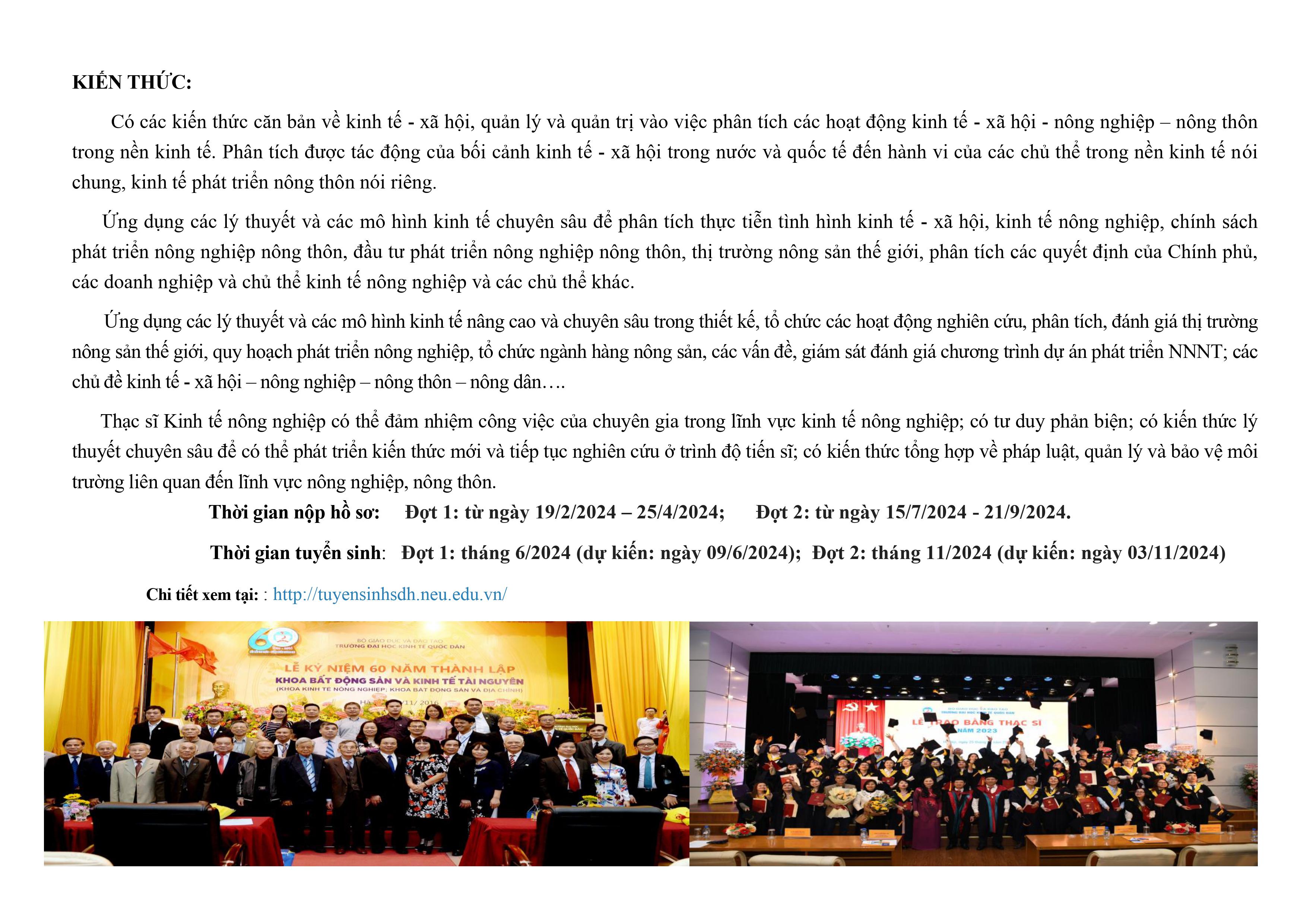 05/04/2024 2024-04-05 10:22Thông tin tuyển sinh Thạc sĩ Kinh tế Nông nghiệp định hướng ứng dụng