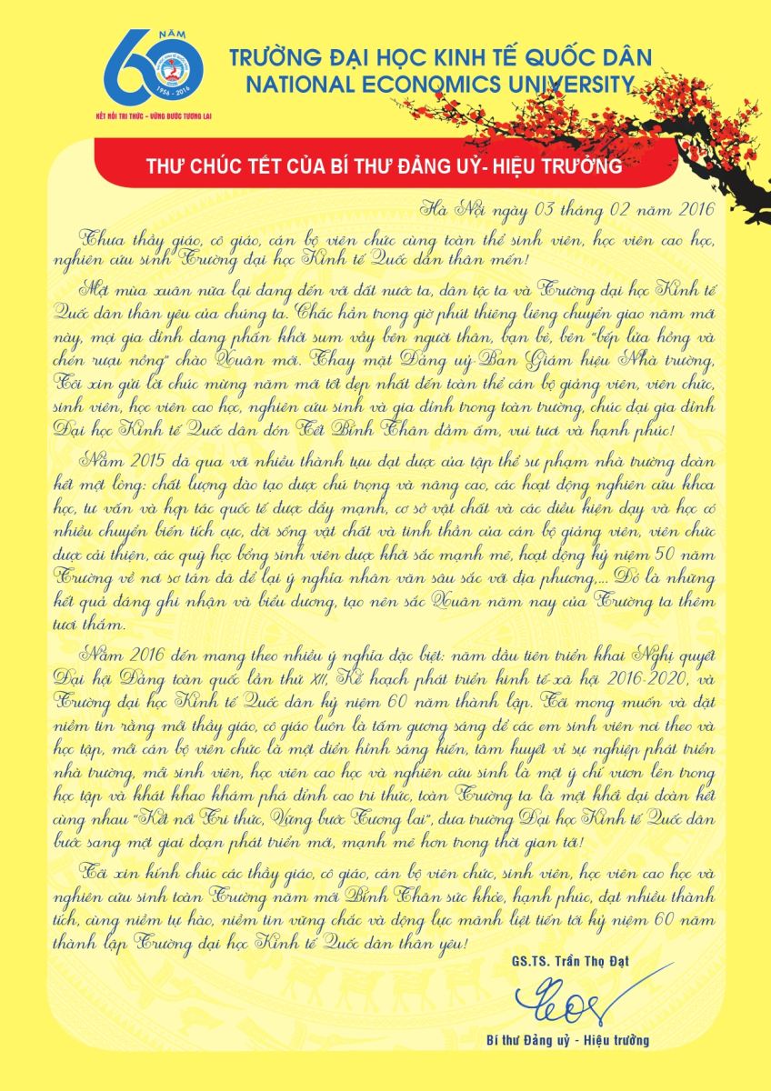 THƯ CHÚC TẾT CỦA BÍ THƯ ĐẢNG ỦY – HIỆU TRƯỞNG