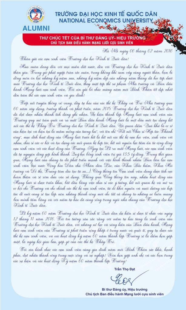 06/02/2016 2016-02-06 0:00THƯ CHÚC TẾT CỰU SINH VIÊN