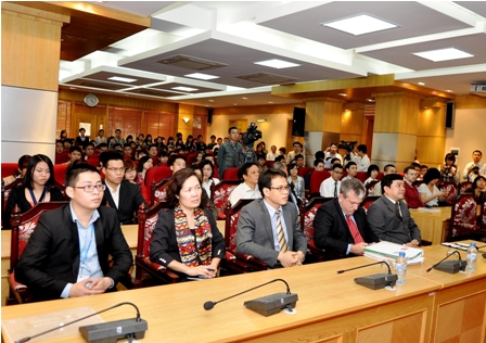 Đông đảo cán bộ, giảng viên và sinh viên tham dự buổi diễn thuyết |