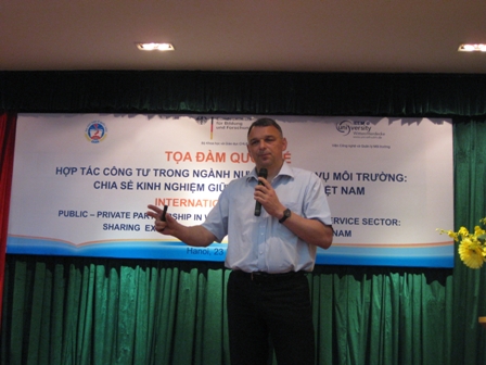 Tham luận của các chuyên gia từ CHLB Đức giới thiệu về chính sách quản lý PPP trong ngành nước và chia sẻ kinh nghiệm từ các mô hình thực tế PPP trong ngành nước của Đức như: cấp nước quy mô lớn với các khu vực tắc nghẽn; hiện đại hóa kinh doanh nước sạch Đông Đức; nước thải, hậu cần và chất thải rắn Bremerhaven; xử lý nước thải ở các khu công nghiệp Bitterfeld Wolfen… các chuyên gia CHLB Đức cũng giới thiệu kinh nghiệm toàn cầu với PPP về vệ sinh nước sạch đô thị…Những kinh nghiệm trên, cả thành công lẫn thất bại, đã được thảo luận để rút ra những bài học cần thiết cho Việt Nam.