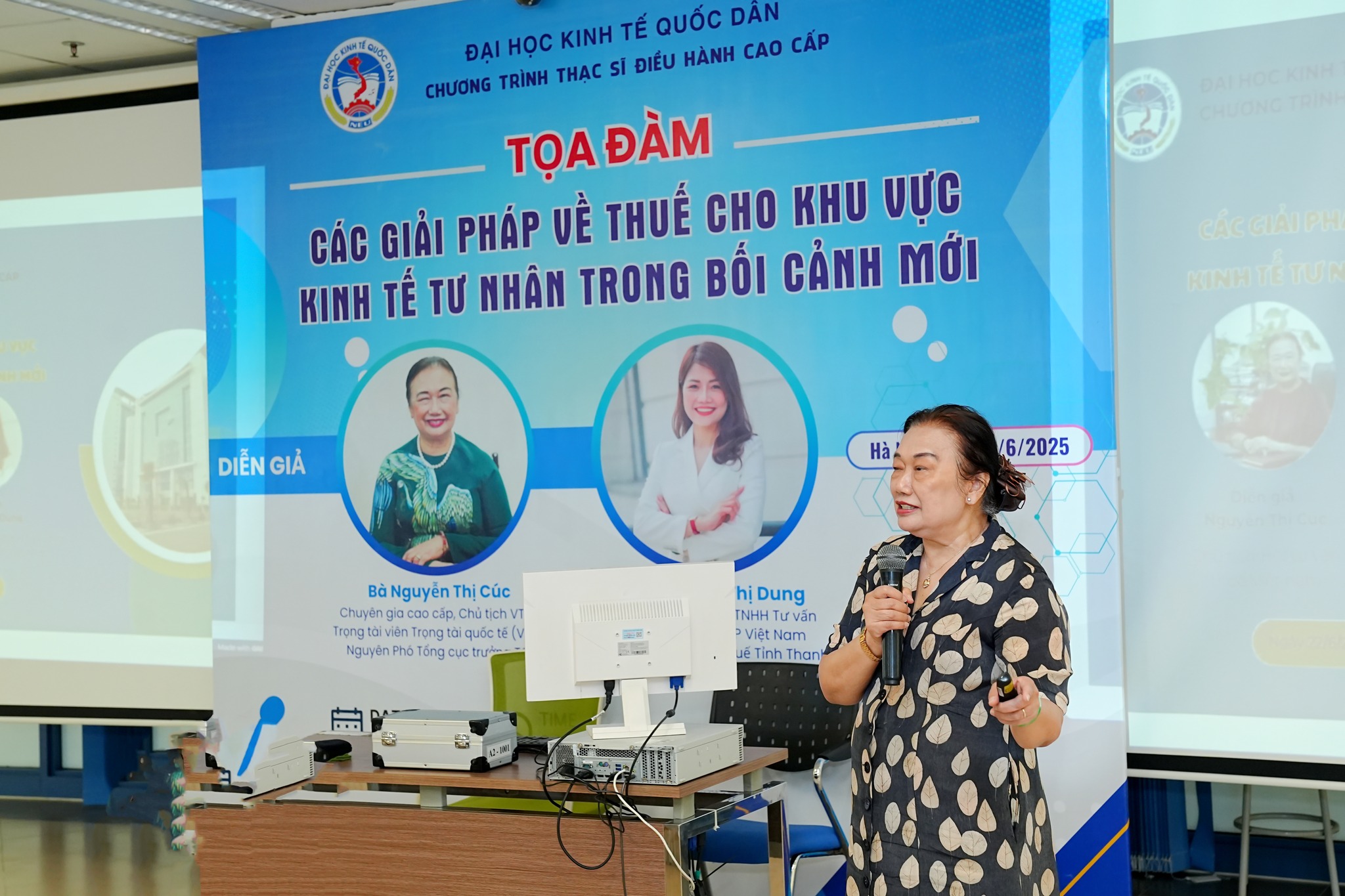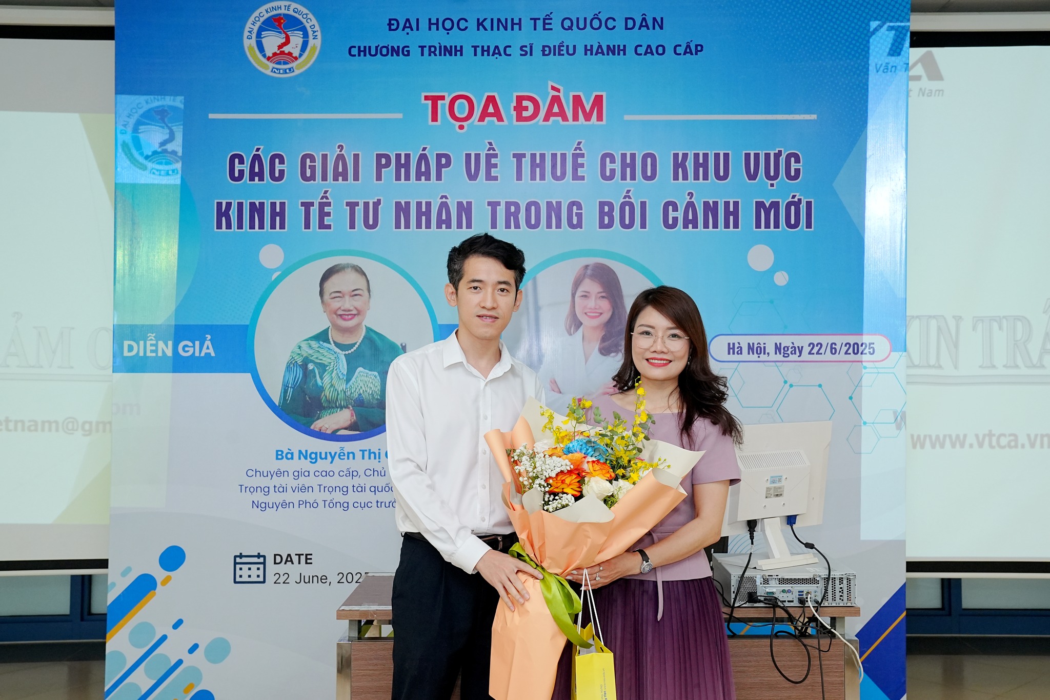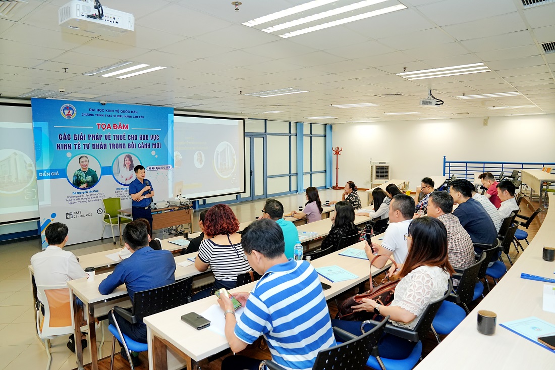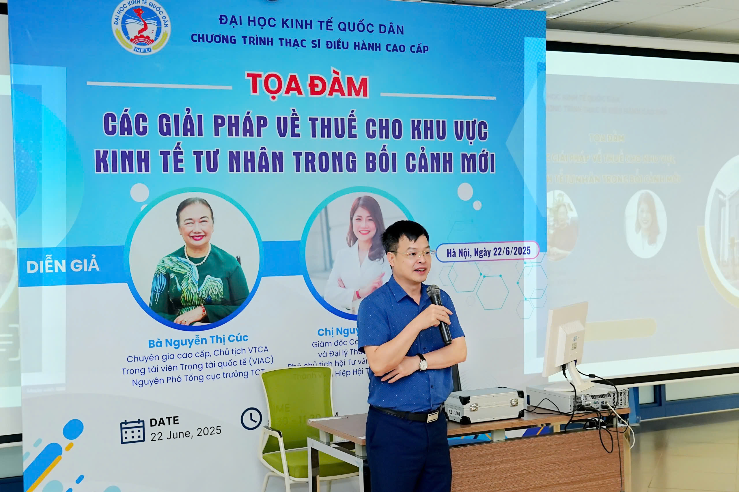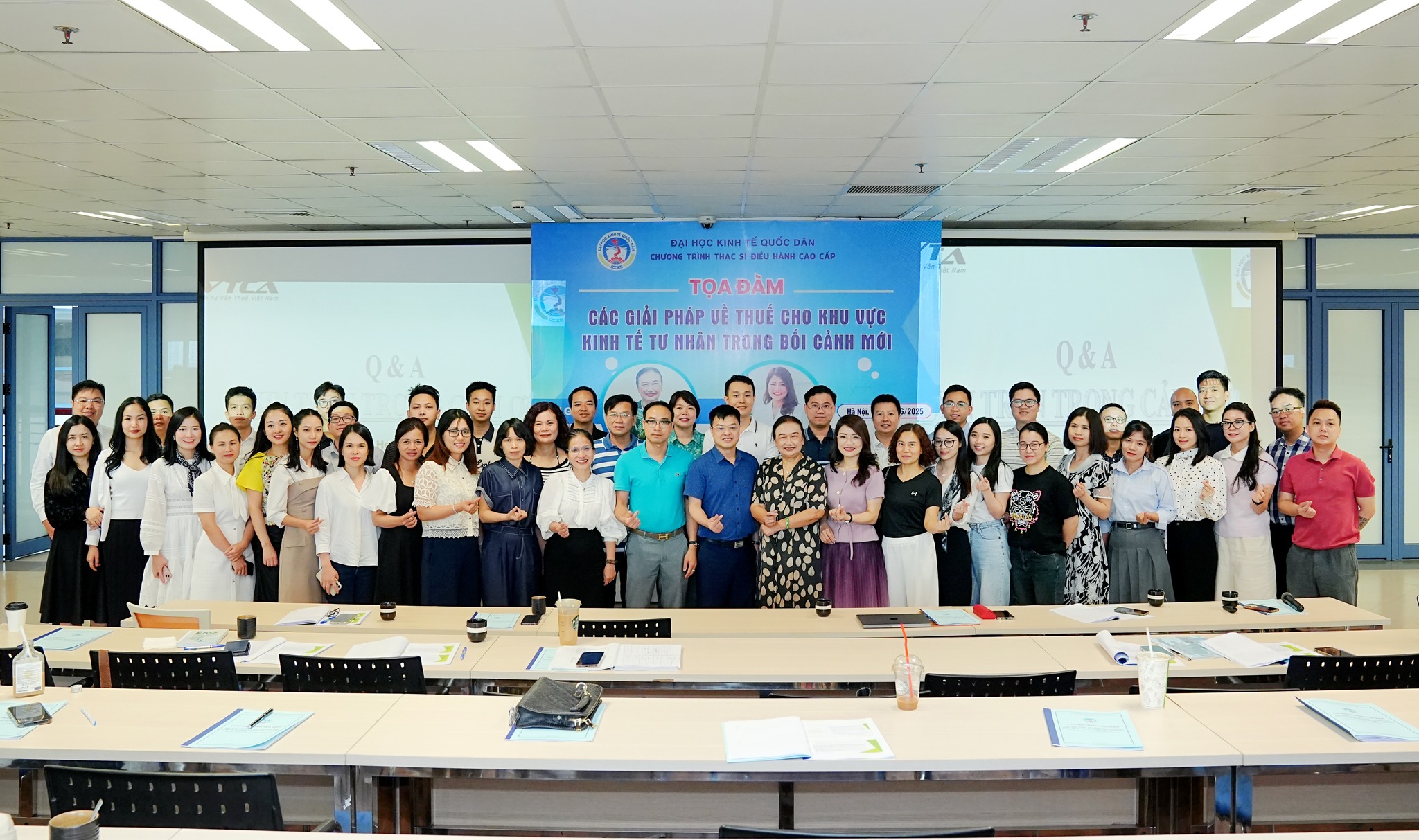 Sáng 22/6/2025, tại Đại học Kinh tế Quốc dân, Chương trình Thạc sĩ Điều hành cao cấp Executive MBA đã tổ chức Tọa đàm với chủ đề “Các giải pháp về Thuế cho khu vực kinh tế tư nhân trong bối cảnh mới”.