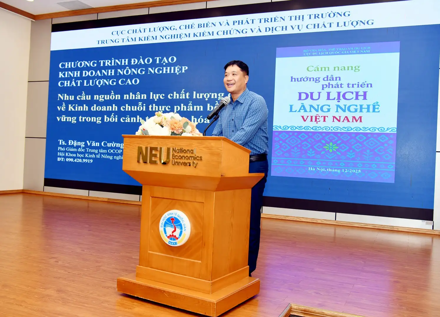TS. Đặng Văn Cường – Phó Giám đốc Trung tâm tư vấn phát triển OCOP trình bày tham luận “Nhu cầu về nhân lực đối với ngành Kinh doanh chuỗi thực phẩm bền vững trong bối cảnh toàn cầu hóa”