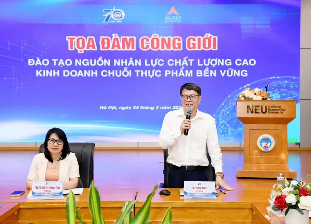 Chiều ngày 24/3/2026, Đại học Kinh tế Quốc dân đã tổ chức thành công Tọa đàm công giới: Đào tạo nguồn nhân lực chất lượng cao kinh doanh chuỗi thực phẩm bền vững.