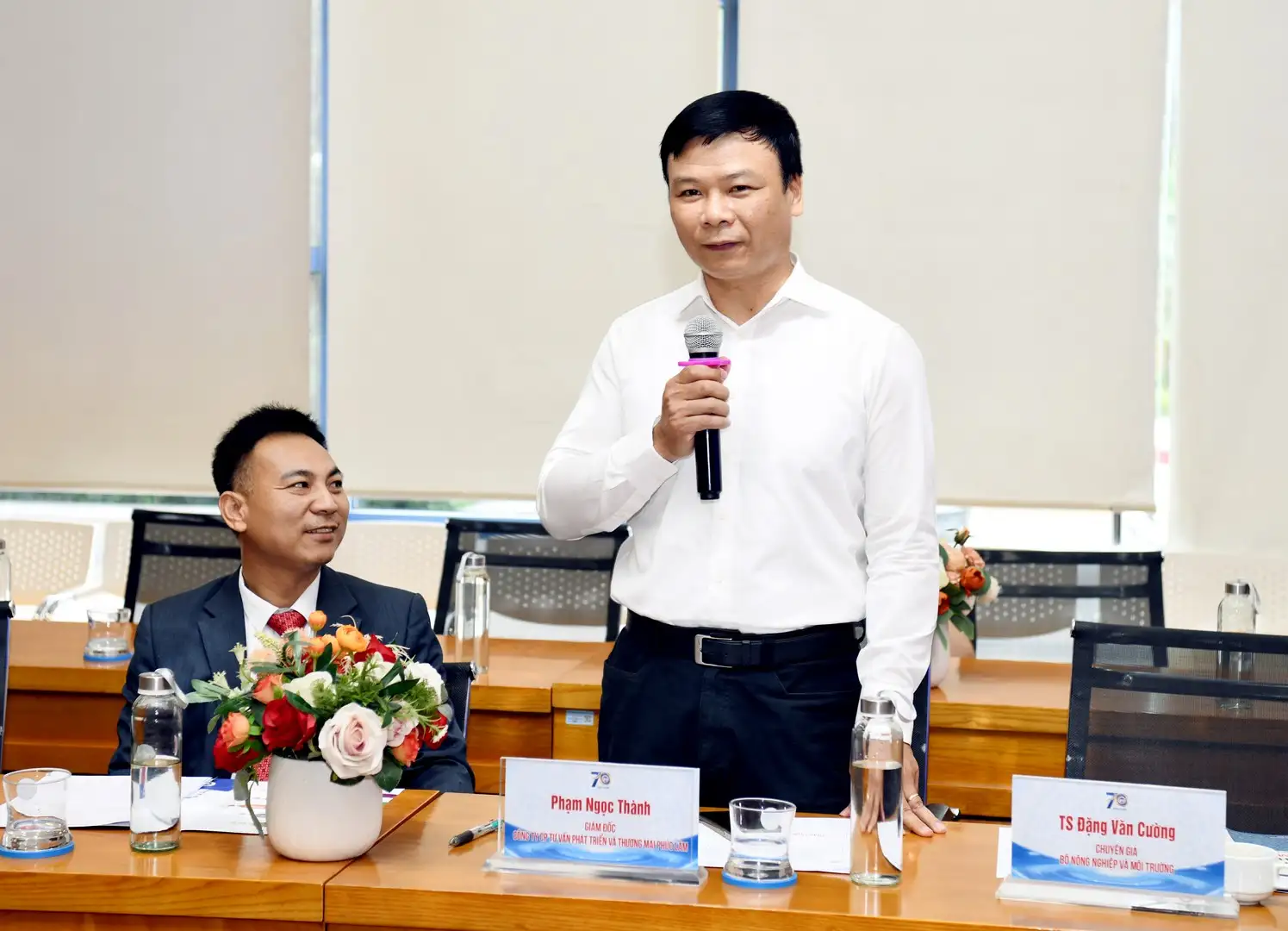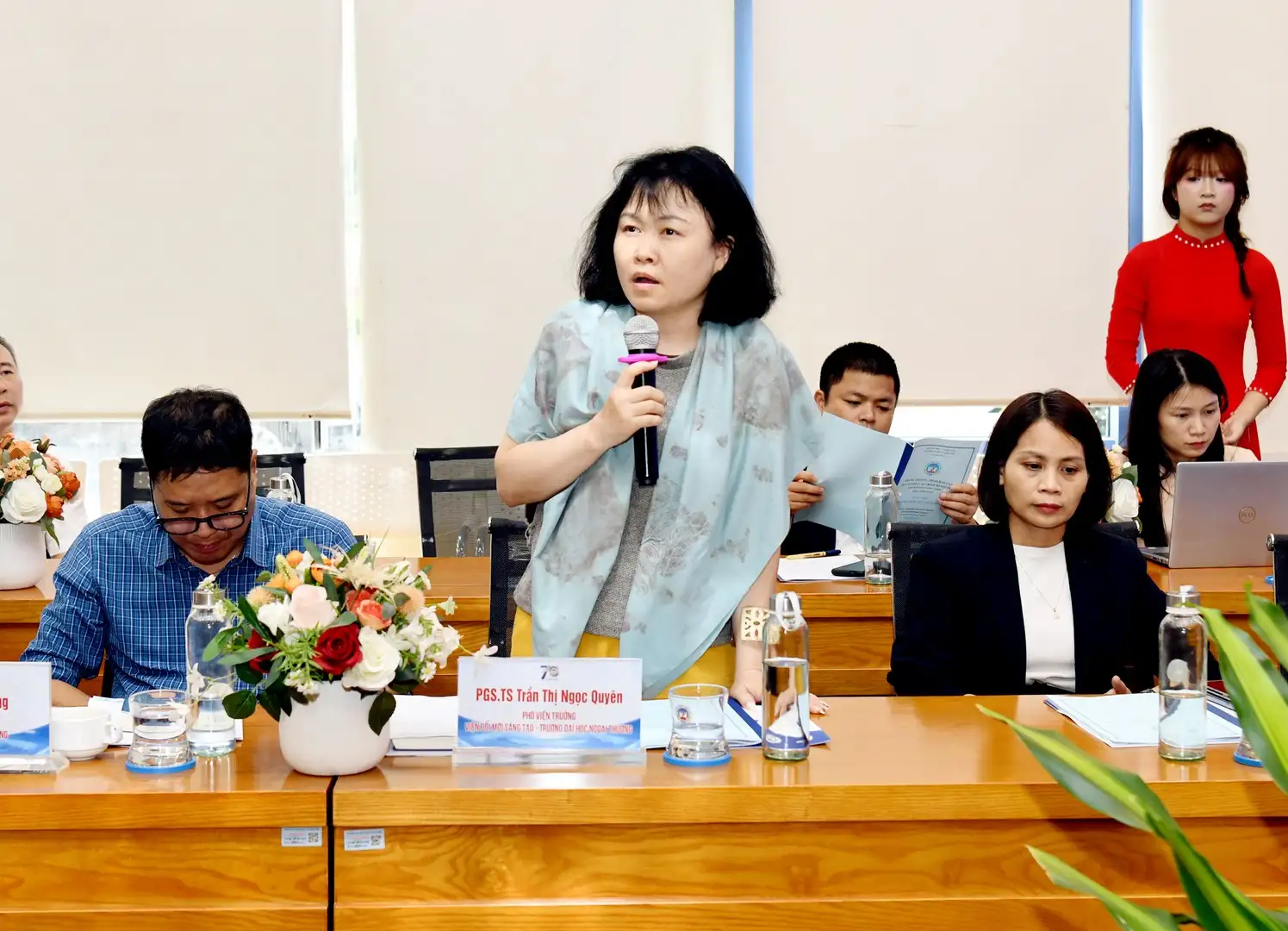 Về phía đại biểu ngoài trường có: PGS.TS Lưu Bích Ngọc – Chánh Văn phòng Hội đồng Quốc gia Giáo dục và Phát triển nhân lực; GS.TS Nguyễn Quang Thái – Chủ tịch Hội Khoa học Kinh tế Việt Nam; ông Tống Hưng Hải – Chủ tịch HĐQT Công ty Hoàng Gia; PGS.TS Trần Thị Ngọc Quyên – Phó Viện trưởng Viện Đổi mới sáng tạo, Trường Đại học Ngoại thương; bà Bùi Thị Hải Yến – Giám đốc HTX Sản xuất và Thương mại dịch vụ Bản Việt; ông Phạm Ngọc Thành – Giám đốc CTCP Tư vấn Phát triển và Thương mại Phúc Lâm; bà Lê Thị Hoài Thương – Giám đốc đối ngoại Công ty Nestlé Việt Nam; ông Nguyễn Văn Tình – Chủ tịch HĐQT CTCP Cá sạch Việt Nam; ông Ngô Đức Mạnh – Giám đốc vận hành CTCP Cá sạch Việt Nam; bà Phan Kiều Anh – Phó Giám đốc điều hành CTCP chế biên nông sản Bảo Minh; TS. Đặng Văn Cường – Phó Giám đốc Trung tâm tư vấn phát triển OCOP; cùng đại diện các cơ quan, doanh nghiệp.