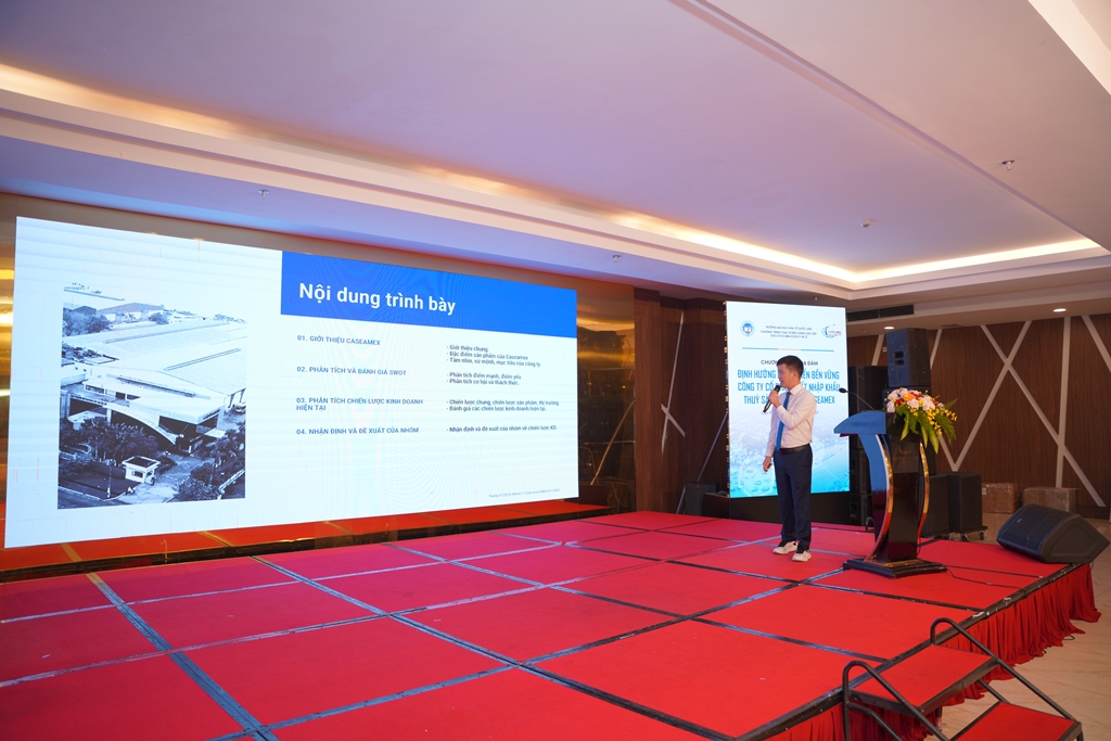 Tại buổi Tọa đàm, các nhóm nghiên cứu đã lần lượt trình bày các chủ đề về: Định hướng chiến lược kinh doanh của Caseamex; Định hướng chiến lược marketing quốc tế của Caseamex; Thúc đẩy chuyển đổi số tại Caseamex; Nâng cao hiệu quả vốn kinh doanh của Caseamex; Hoàn thiện chuỗi cung ứng cá tra xuất khẩu tại Caseamex trong bối cảnh mới và Phát triển dịch vụ logistics hỗ trợ hoạt động xuất khẩu: Nghiên cứu trường hợp của Caseamex.