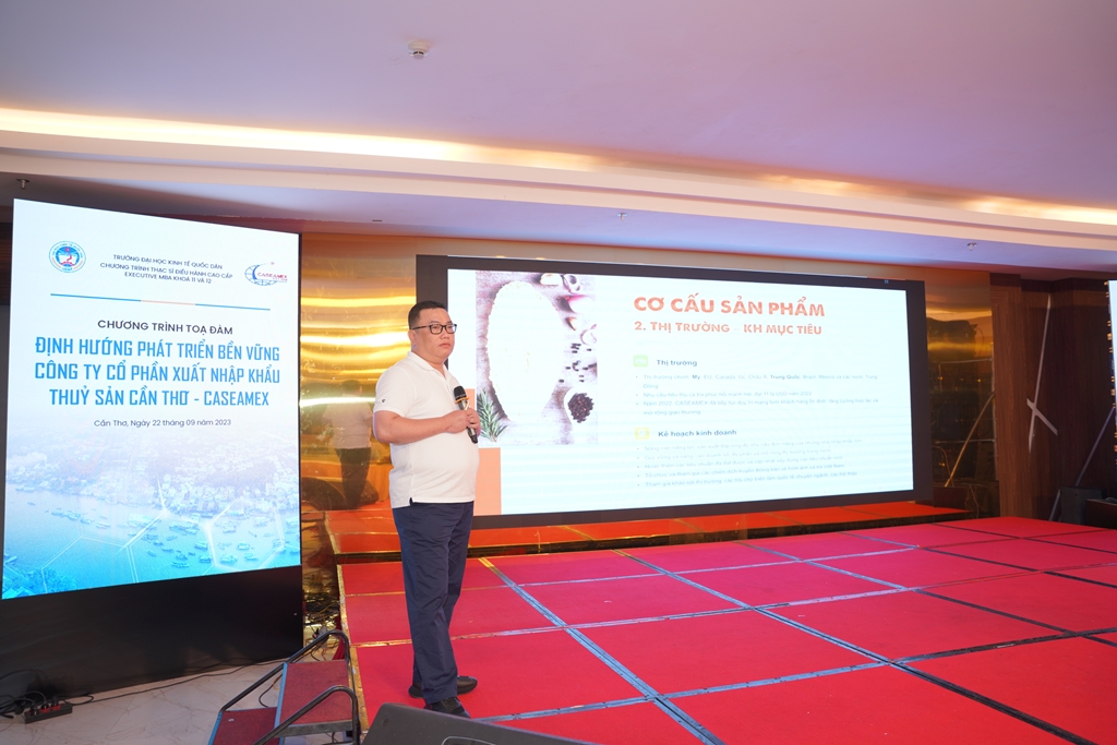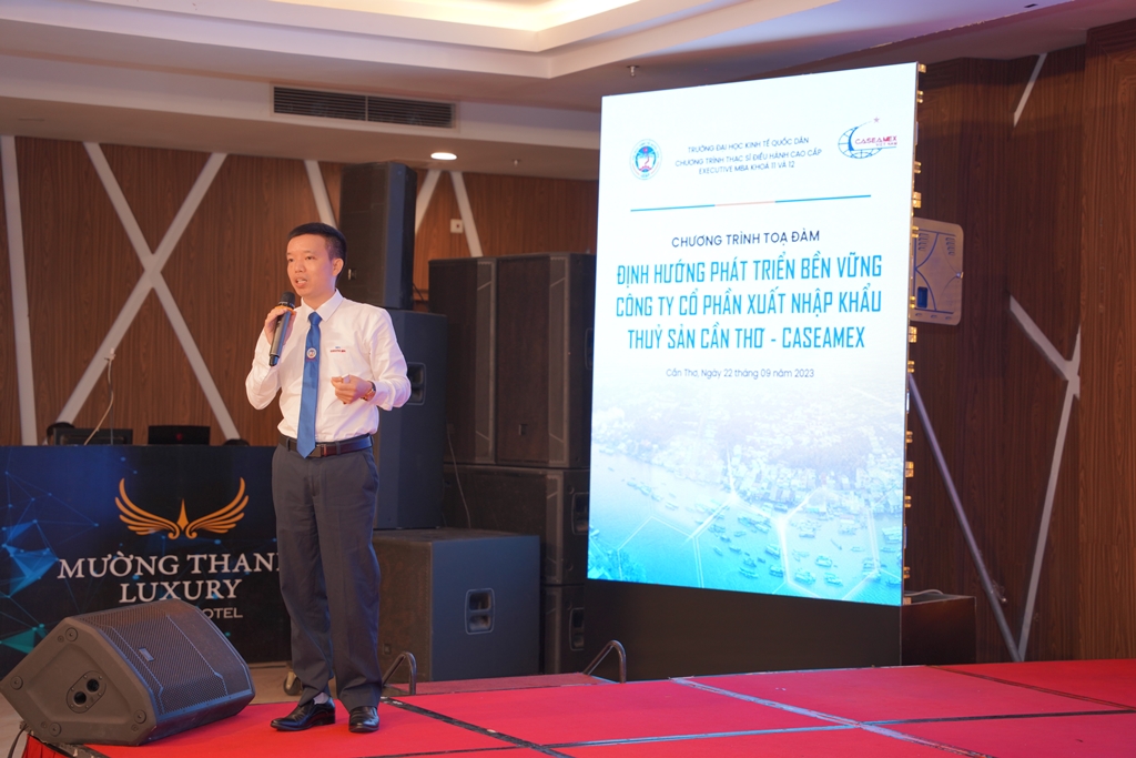 Nằm trong chương trình học tập thực tế thường niên dành cho các học viên của chương trình đào tạo Thạc sĩ Điều hành cao cấp Executive – MBA của Trường Đại học Kinh tế Quốc dân, ngày 22/9/2023, Trường Đại học Kinh tế Quốc phối hợp với Công ty Cổ phần Xuất nhập khẩu Thủy sản Cần Thơ – Caseamex đã tổ chức thành công buổi Tọa đàm với chủ đề “Định hướng phát triển bền vững Công ty Cổ phần Xuất nhập khẩu Thủy sản Cần Thơ – Caseamex” tại Thành phố Cần Thơ.