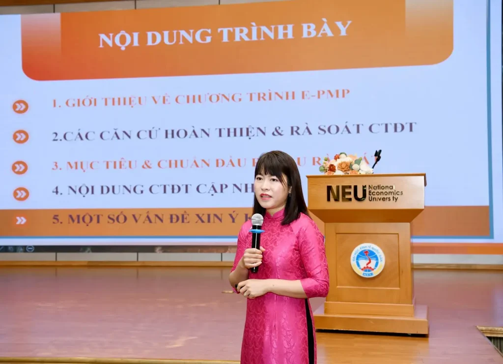 Báo cáo cũng đề nghị tiếp tục lấy ý kiến về mục tiêu, chuẩn đầu ra, cấu trúc chương trình và phương pháp giảng dạy trong bối cảnh trí tuệ nhân tạo tác động mạnh tới giáo dục đại học. Việc cập nhật, hoàn thiện chương trình E-PMP khẳng định định hướng của Đại học Kinh tế Quốc dân trong đổi mới đào tạo và phát triển nguồn nhân lực chất lượng cao cho ngành quản lý công và chính sách công trong thời kỳ hội nhập và chuyển đổi số.