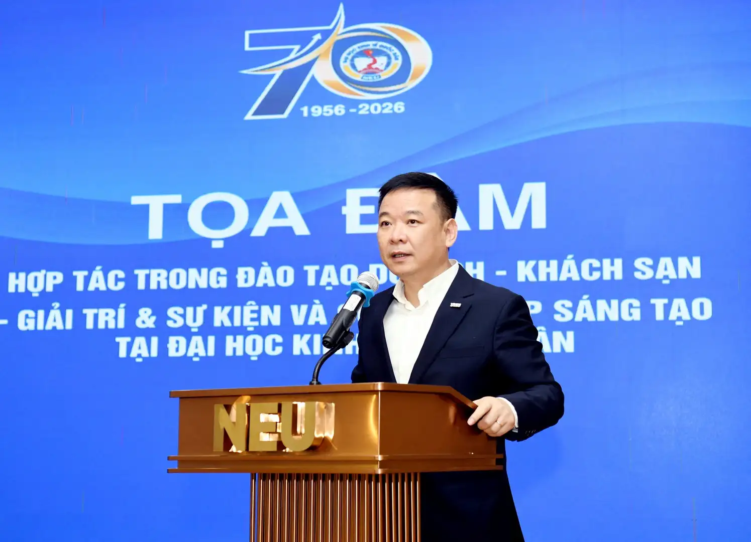 Phát biểu khai mạc Toạ đàm, PGS.TS Bùi Huy Nhượng – Giám đốc Đại học Kinh tế Quốc dân nhấn mạnh, du lịch là ngành có tính thực tiễn cao, đòi hỏi sự kết hợp chặt chẽ giữa lý thuyết và trải nghiệm thực tế. Vì vậy, việc gắn kết “Nhà nước – nhà trường – doanh nghiệp” được xem là giải pháp quan trọng nhằm nâng cao chất lượng đào tạo, qua đó xây dựng nguồn nhân lực đáp ứng tốt hơn nhu cầu của ngành du lịch và thị trường lao động.