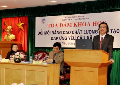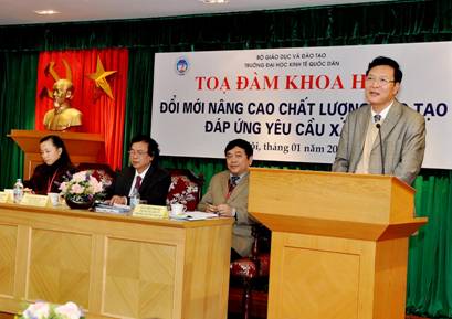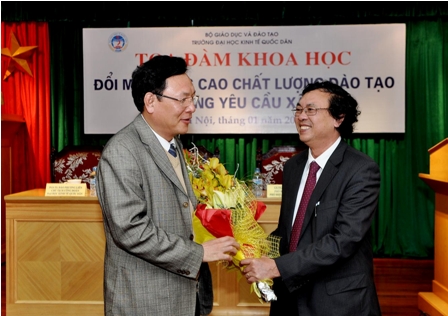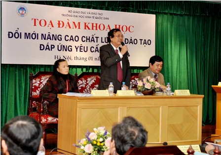 Sáng ngày 18/1/2012, tại Hội trường đa năng, Trường đại học KTQD đã tổ chức buổi tọa đàm khoa học “ Đổi mới nâng cao chất lượng đào tạo đáp ứng yêu cầu xã hội”. Đến dự buổi tọa đàm, trường vui mừng được đón GS.TS Phạm Vũ Luận – UVTW Đảng, Bộ trưởng Bộ Giáo dục và Đào tạo; lãnh đạo các Cục, các Vụ, Văn phòng các đơn vị thuộc Bộ Giáo dục Đào tạo; Đại diện Ban Khoa giáo Trung ương. Về phía trường, có GS.TS Nguyễn Văn Nam, Bí thư Đảng ủy, Hiệu trưởng; các đồng chí Phó hiệu trưởng; lãnh đạo các đơn vị trực thuộc; Trưởng các bộ môn; Trưởng các Ban thuộc các Viện của trường.
