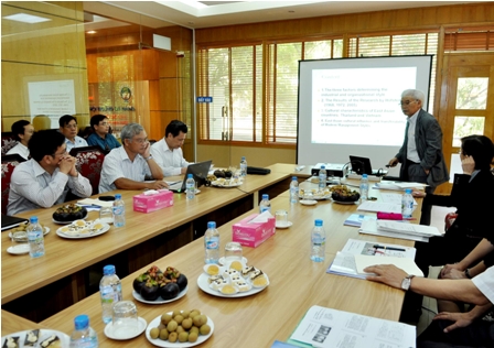 Chiều ngày 9 tháng 8 năm 2012 vừa qua, tại Phòng họp đa năng, Gác 2 – Nhà 10 – Trường ĐHKTQD, Khoa Quản trị kinh doanh đã phối hợp với Trường đại học Chu O – Nhật Bản tổ chức buổi tọa đàm khoa học về “Ảnh hưởng về nền văn hóa các nước Asean tới khả năng chuyển giao phong cách quản lý Nhật Bản”. Đến dự buổi tọa đàm, về phía ĐH Chu O có GS.TS. Yoshiaki Takahashi, GS.TS. Sakai Shozaburo; TS.Chikako Takeishi cùng các cộng sự. Về phía trường ĐHKTQD có PGS.TS. Lê Công Hoa – Trưởng khoa QTKD; TS.Nguyễn Thành Hiếu – Phó trưởng khoa QTKD; TS. Phạm Trương Hoàng – Trưởng phòng Hợp tác quốc tế; các đồng chí trưởng, phó bộ môn và giảng viên thuộc khoa QTKD.