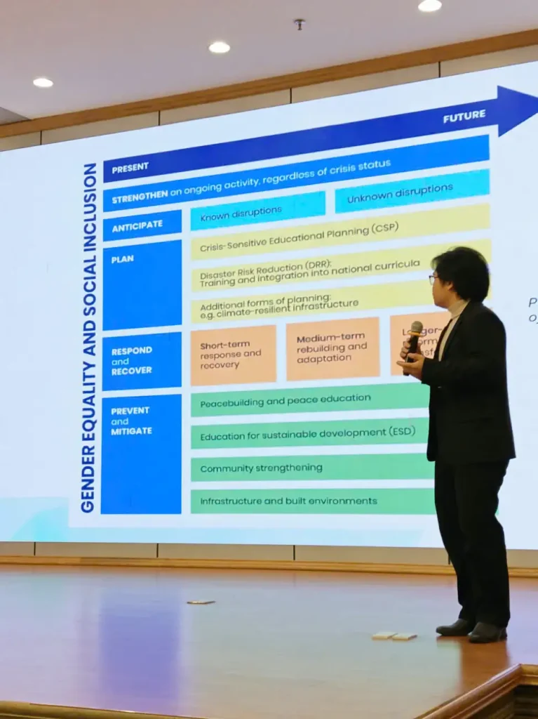 Khép lại phiên trình bày, TS. Phùng Đức Tùng và ông Đặng Vinh Khôi (Viện Nghiên cứu Phát triển Mekong – MDRI) đã giới thiệu chuyên đề “From Foresight to Action: Anticipatory Governance for Education Resilience”, trong đó nhấn mạnh cách tiếp cận “từ tiên liệu đến hành động” như một hướng đi quan trọng nhằm nâng cao năng lực chống chịu và khả năng thích ứng của hệ thống giáo dục trước những biến động trong tương lai.