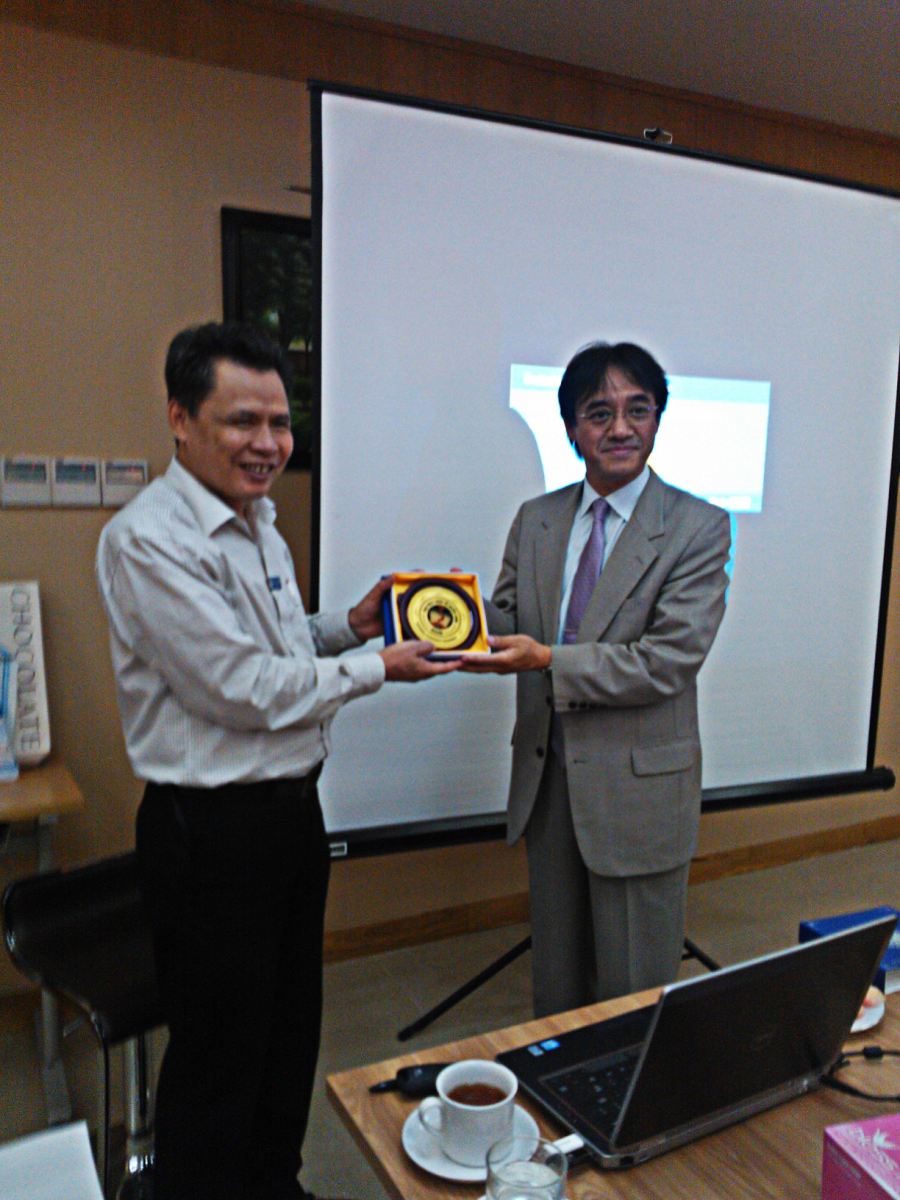PGS.TS Lê Công Hoa – Trưởng Khoa Quản trị kinh doanh trao tặng phẩm cho GS. Mizobata