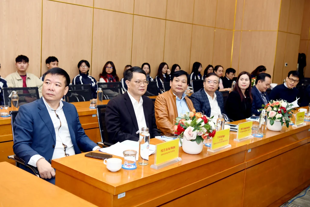 Tham dự Tọa đàm có: PGS.TS Bùi Huy Nhượng – Giám đốc Đại học; GS.TS Nguyễn Thành Hiếu – Phó Giám đốc Đại học; TS. Vũ Văn Ngọc – Viện trưởng Viện Đào tạo TT, CLC & POHE; cùng đại diện lãnh đạo các Trường, Phòng ban, Khoa, Viện, Trung tâm, các đơn vị chuyên môn, giảng viên, nhà khoa học và đại diện doanh nghiệp.