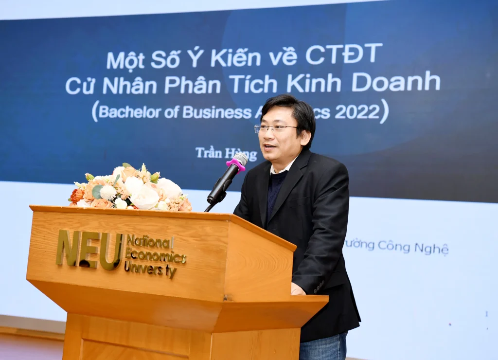 Đối với chương trình Phân tích kinh doanh, Giám đốc Đại học cho biết Đại học Kinh tế Quốc dân bắt đầu triển khai đào tạo từ năm 2019 và là một trong những cơ sở tiên phong tại Việt Nam. Việc tổ chức Tọa đàm lần này nhằm tạo diễn đàn để các chuyên gia, doanh nghiệp và các đơn vị trong Nhà trường cùng nhìn nhận, đánh giá những kết quả đã đạt được; đồng thời xác định những nội dung cần tiếp tục phát huy và những vấn đề cần điều chỉnh, cập nhật, bảo đảm chương trình đào tạo phù hợp với sự phát triển nhanh chóng của kinh tế số, trí tuệ nhân tạo và khoa học dữ liệu.