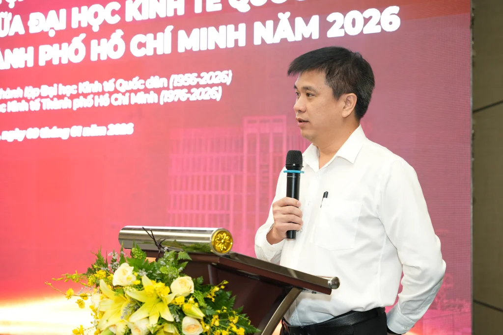 ThS. Trương Minh Kiệt – Phó Chánh Văn phòng phụ trách Văn phòng đại học Đại học Kinh tế Thành phố Hồ Chí Minh trình bày các kết quả hợp tác giai đoạn 2020 – 2025