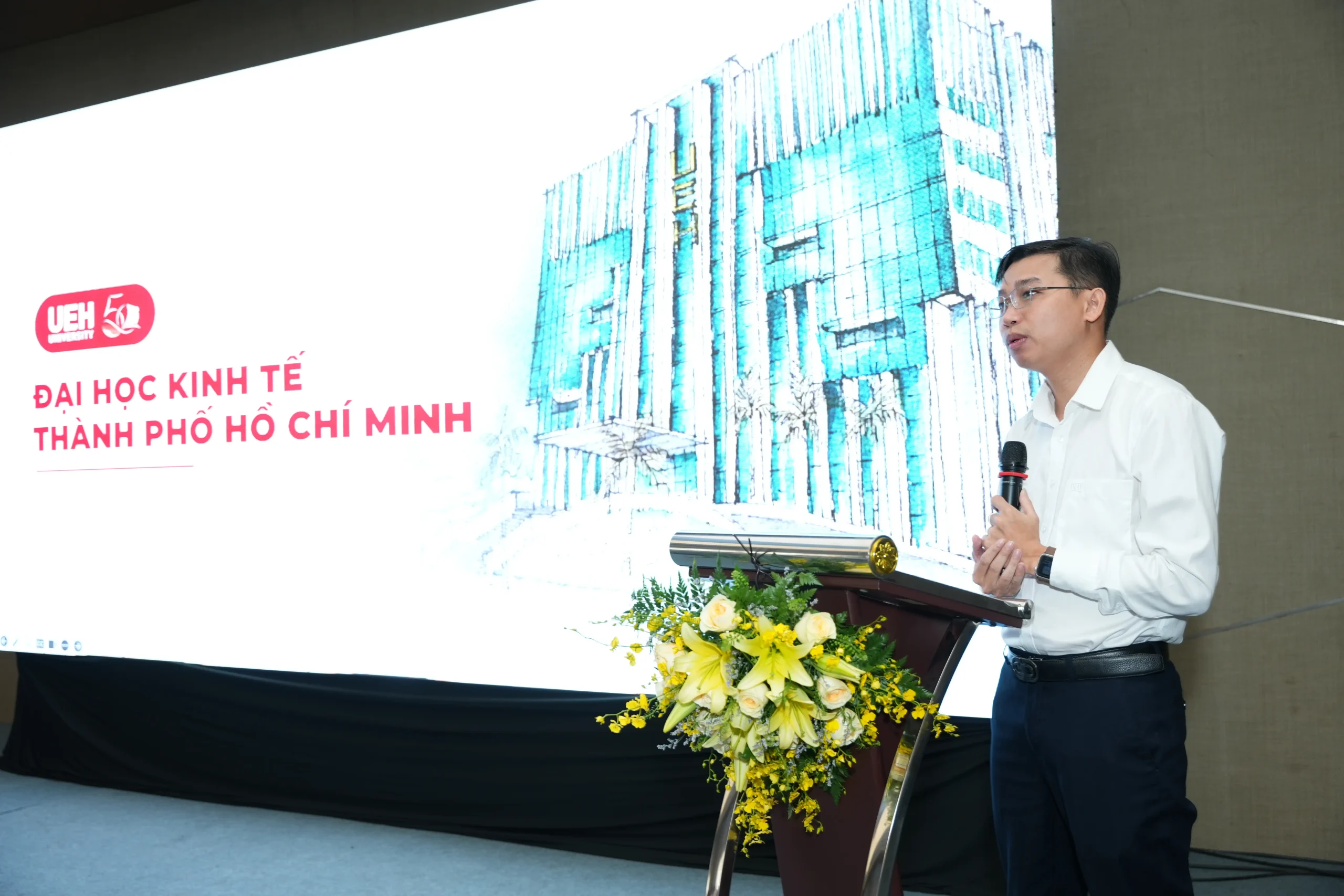 ThS. Dương Minh Mẫn – Trưởng ban Phát triển tổ chức – Nhân lực UEH trình bày về các hoạt động nhân dịp kỷ niệm 50 năm thành lập UEH