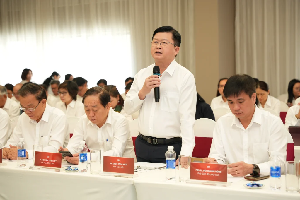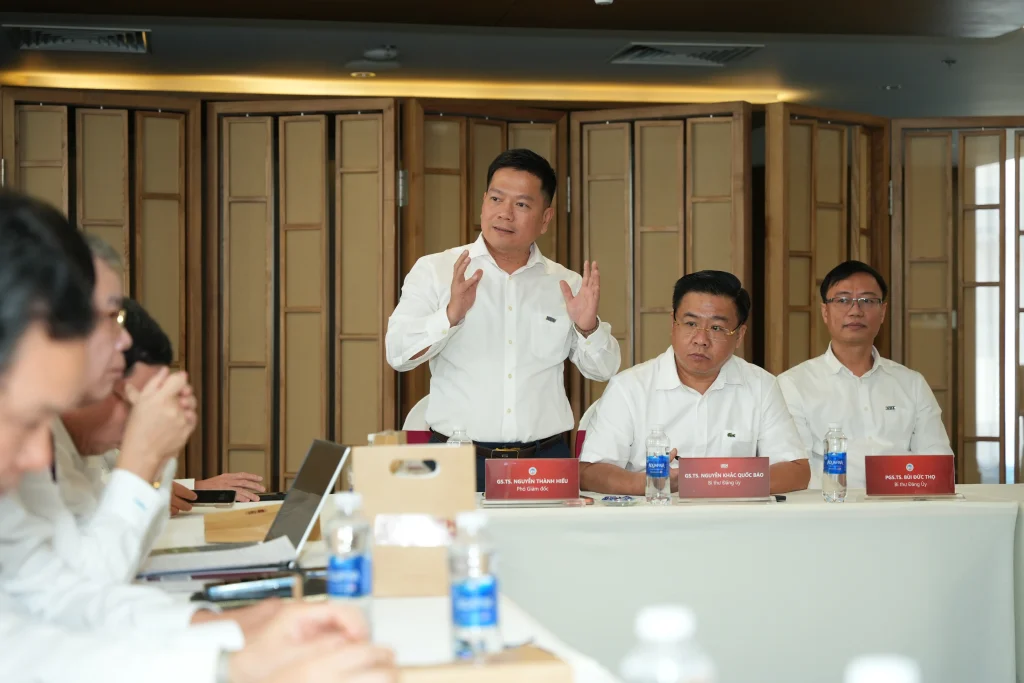 Đáng chú ý, GS.TS Trần Thọ Đạt – Chủ tịch Hội đồng Khoa học và Đào tạo Đại học Kinh tế Quốc dân, nguyên Bí thư Đảng ủy, nguyên Hiệu trưởng đã trình bày chuyên đề “Phát triển kinh tế nhanh – xanh – số ở Khánh Hoà: Hàm ý đào tạo nhân lực đối với NEU và UEH”, nhấn mạnh vai trò của liên kết đại học trong đáp ứng nhu cầu phát triển kinh tế – xã hội địa phương.