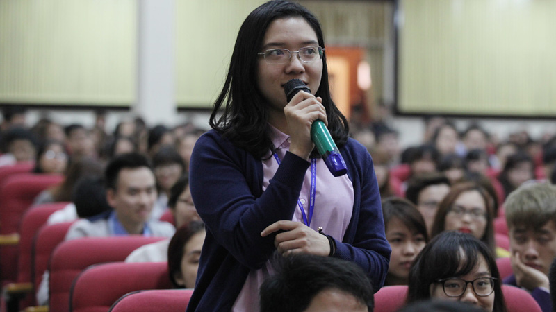 Những ví von gần gũi của vị lãnh đạo đến từ một tổchức tiền tệ lớn của thế giới khiến các sinh viên không khỏi thích thú.