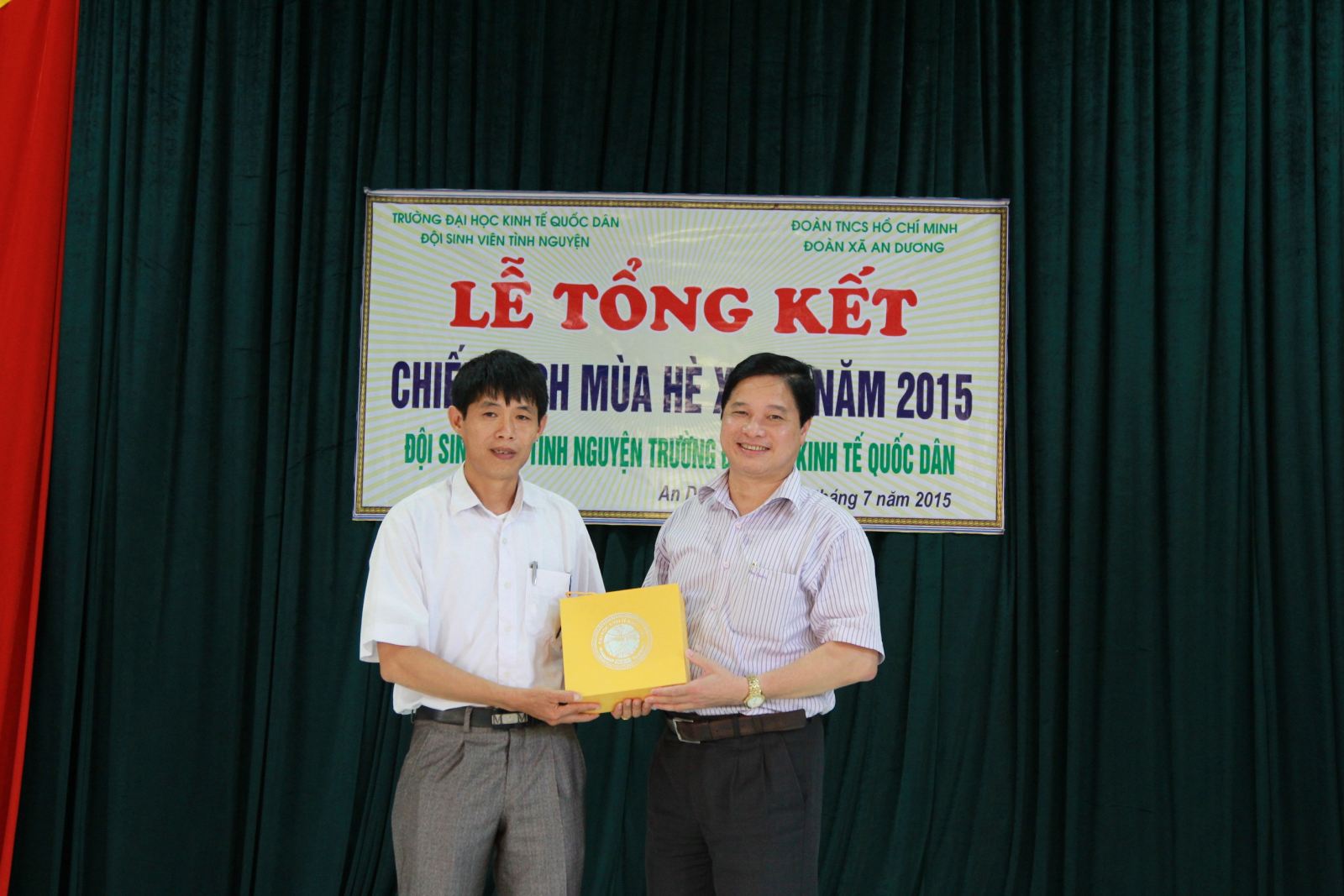 Cũng trong chương trình, Nhà trường đã trao tặng cho lãnh đạo xã An Dương món quà lưu niệm cảm ơn sự hỗ trợ của địa phương trong thời gian diễn ra Chiến dịch.