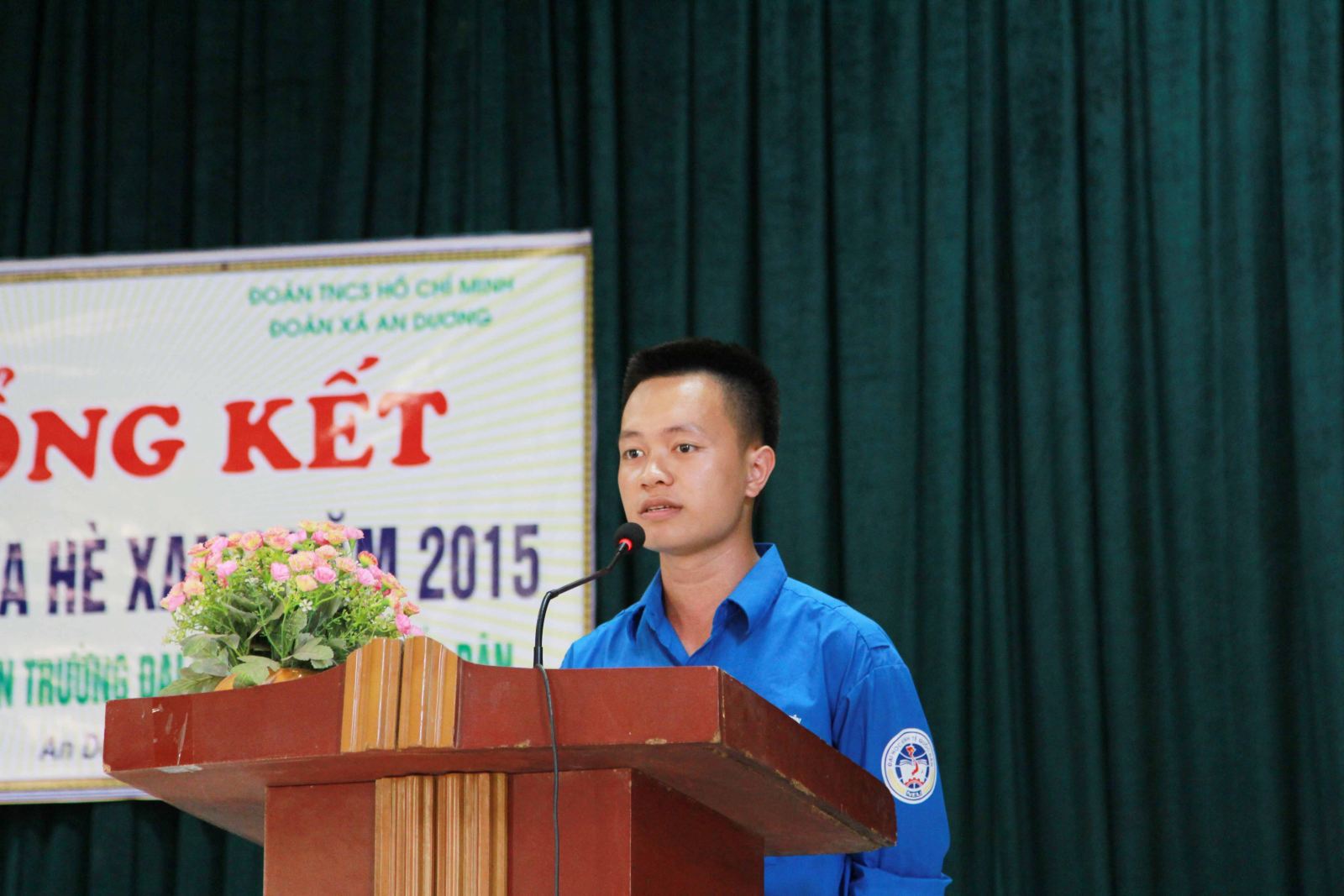 Đồng chí Chu Mạnh Hùng – Đội trưởng Đội SVTN Trường báo cáo hoạt động Chiến dịch Mùa hè TNTN năm 2015 tại xã An Dương