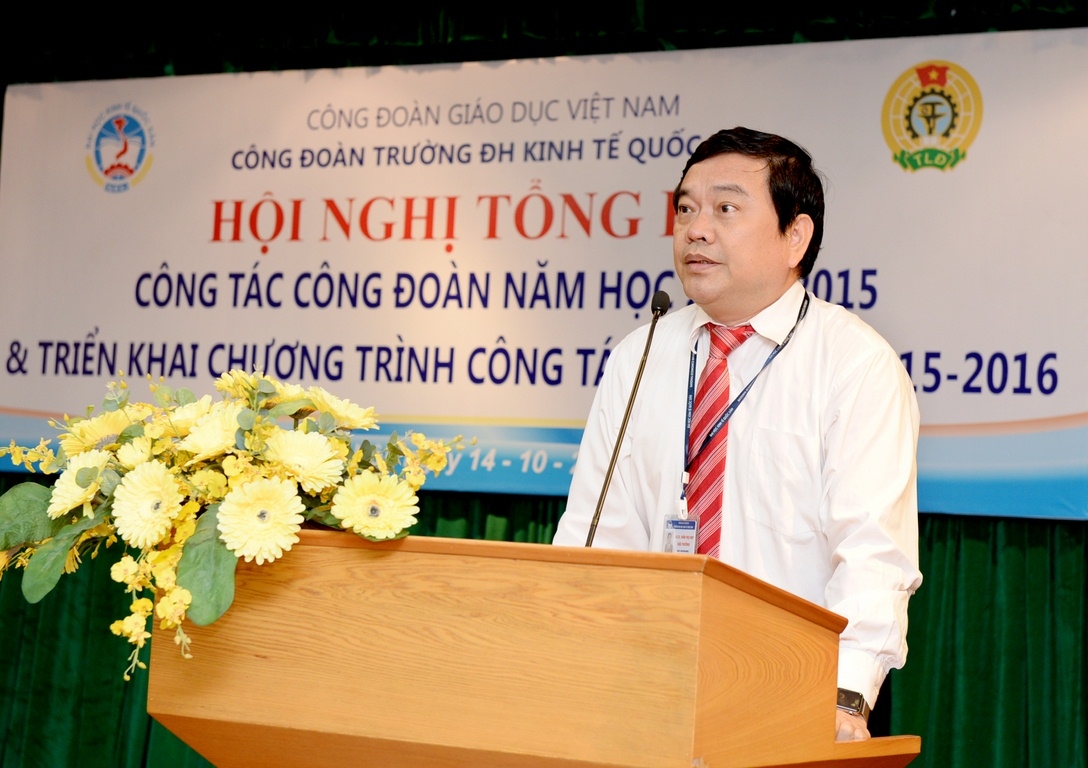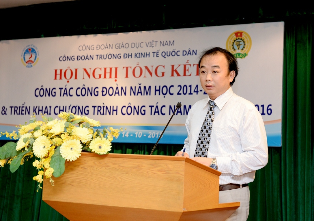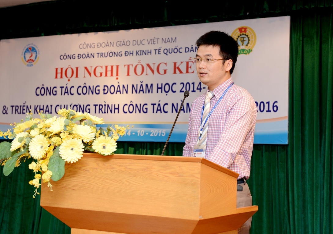 Tại hội nghị, TS. Cấn Anh Tuấn – Phó Chủ tịch Công đoàn đã Báo cáo tổng kết công tác năm học 2014-2015 và triển khai chương trình công tác năm học 2015-2016.
