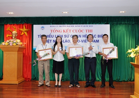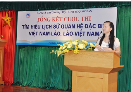 Thực hiện kế hoạch và chỉ đạo của Đảng uỷ Khối các trường Đại học-Cao đẳng Hà Nội, nhân Kỷ niệm 50 năm  thiết lập ngoại giao và 35 năm ngày ký Hiệp ước hữu nghị hợp tác giữa hai nước Việt Nam-Lào.Đảng uỷ Trường Đại học Kinh tế Quốc dân đã xây dựng kế hoạch  số: 22-KH/ĐU, ngày 09-7-2012 về việc tổ chức cuộc thi “Tìm hiểu lịch sử quan hệ đặc biệt Việt Nam-Lào, Lào-Việt Nam” Đảng uỷ đã triển khai đến các tổ chức chính trị-xã hội, các đảng bộ, chi bộ trực thuộc Đảng bộ Trường, các đơn vị trực thuộc Trường và tuyên truyền đến các giảng viên, cán bộ viên chức, học viên và sinh viên trong Trường. Ngày 27 tháng 9 năm 2012, Đảng uỷ Trường Đại học Kinh tế Quốc dân tổ chức tổng kết và trao giải cuộc thi tìm hiểu lịch sử quan hệ đặc biệt Việt Nam-Lào, Lào- Việt Nam. Đến dự có GS.TS Nguyễn Văn Nam- Bí thư Đảng uỷ, Hiệu trưởng Nhà trường, PGS.TS Nguyễn Viết Lâm- Phó Bí thư Thường trực Đảng uỷ Trường, GS.TS Trần Thọ Đạt- Phó Bí thư Đảng uỷ, Phó Hiệu trưởng Trường, GS.TS Phan Công Nghĩa- Đảng uỷ viên, Phó Hiệu trưởng Trường, PGS.TS Đào Thị Phương Liên- Ủy viên Thường vụ Đảng uỷ, Chủ tịch Công đoàn Trường,GS.TS Hoàng Việt- Chủ tịch Hội CCB Trường, Th.s Nguyễn Hoàng Hà- Bí thư Đoàn TNCS Hồ Chí Minh, Đ/c Lâm Tùng- Chủ tịch Hội Sinh viên Trường và các đồng chí đại diện lãnh đạo các Phòng, Khoa, Viện, Trung tâm và cùng toàn thể các thày, cô giáo, cán bộ công nhân viên và sinh viên đã đến dự buổi Tổng kết cuộc thi.