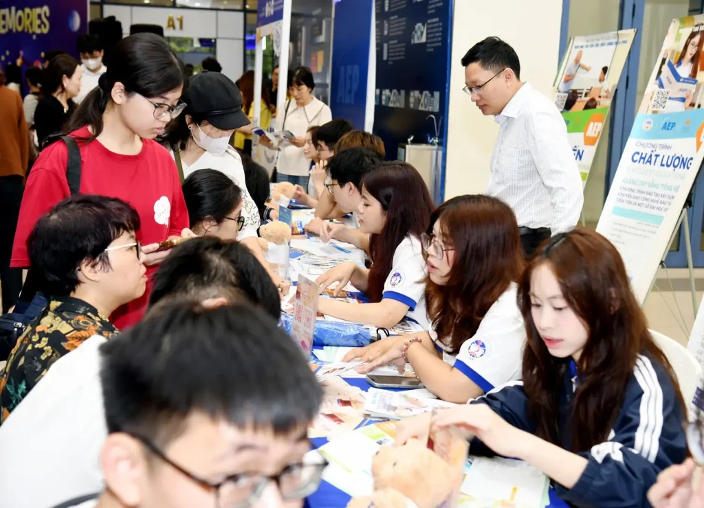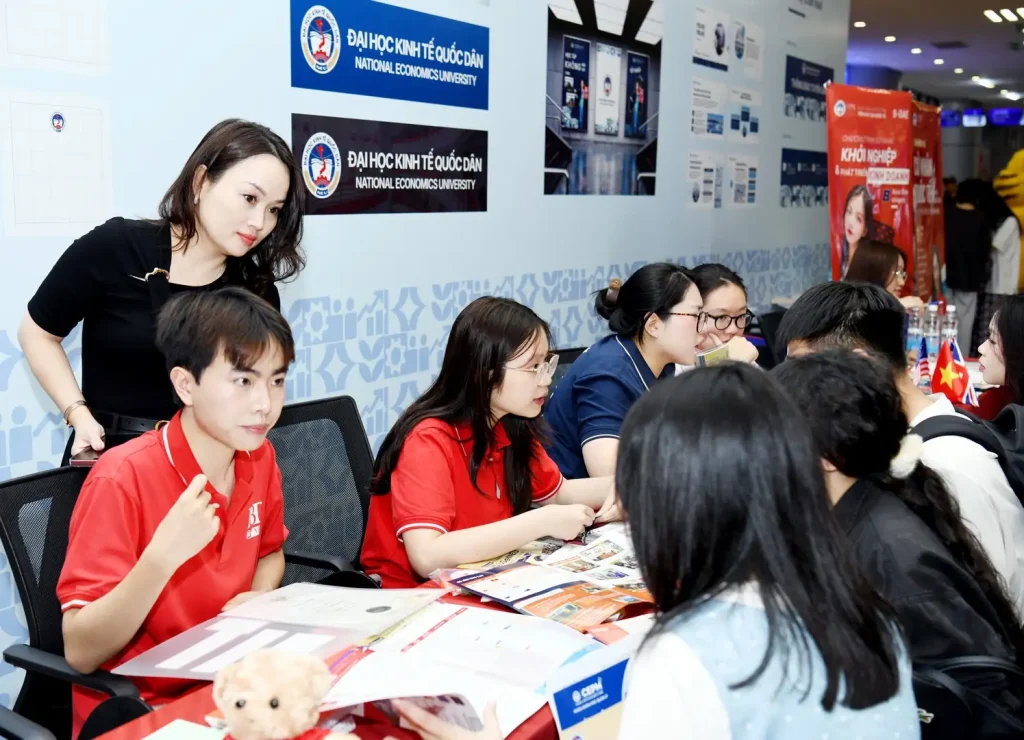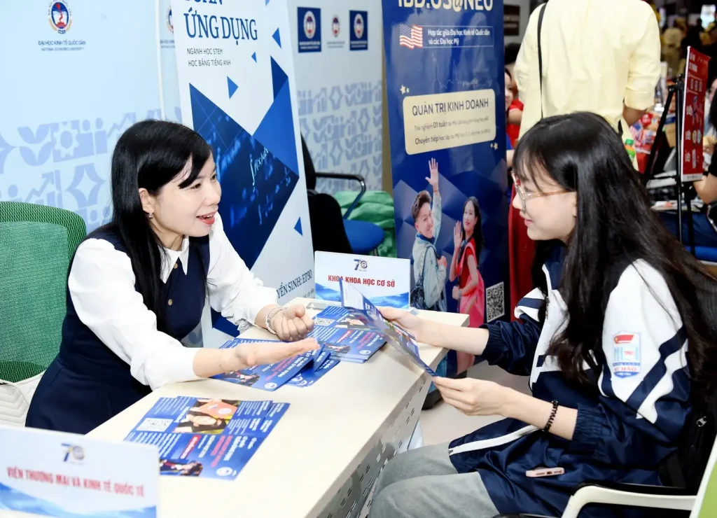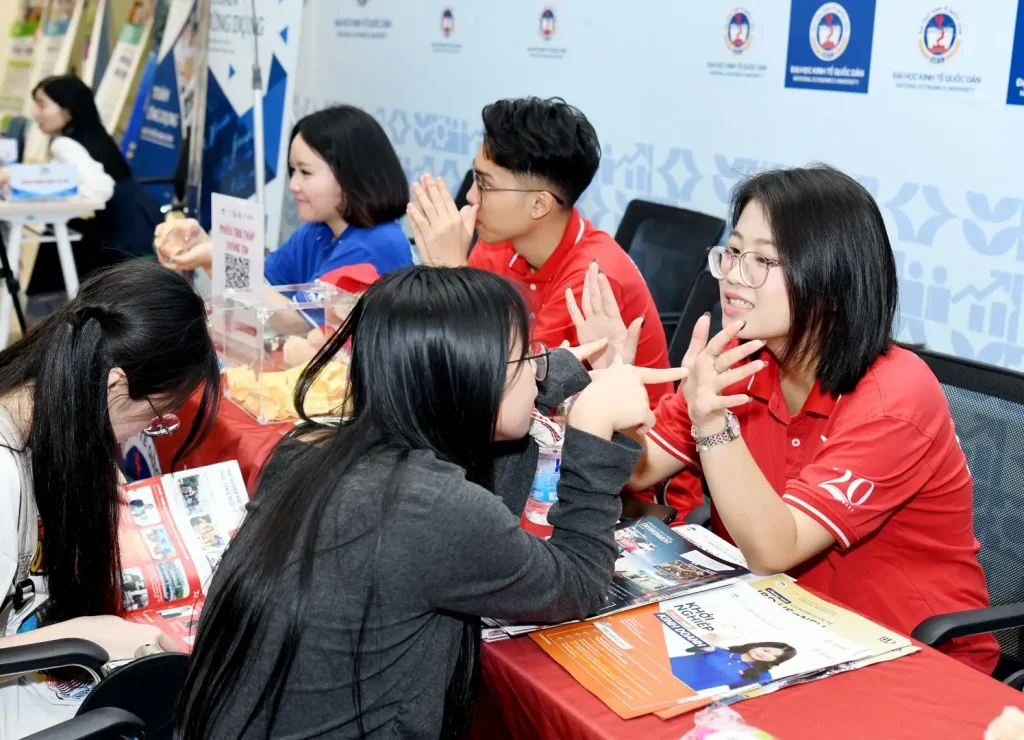 Học sinh tìm hiểu thông tin tuyển sinh tại Đại học Kinh tế Quốc dân
