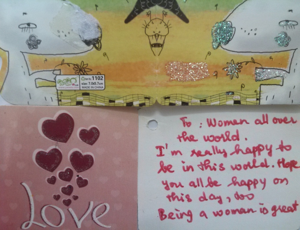 Các bạn sinh viên tham gia chương trình chỉ cần viết những lời chúc mừng ngày 8/3 với những câu chúc tiếng Anh đơn giản và nhận ngay từ Trung tâm những món quà xinh xắn và lời chúc một ngày kỉ niệm thật vui vẻ và ý nghĩa. Sự rụt rè, e ngại khi mới đến tham gia của các bạn sinh viên nhanh chóng được xua tan và ngay lập tức các bạn hào hứng bắt tay vào viết lời chúc bằng Tiếng Anh trong thiệp chúc mừng. Những lời chúc các bạn gửi tới bạn bè, người thân hay đơn giản chỉ là những lời yêu thương gửi đến cho tất cả phụ nữ nhân ngày kỉ niệm, tất cả đều chân thành và ý nghĩa: “ I wish all the world will be happy, successful and pretty forever”… Nhận quà thật đơn giản!